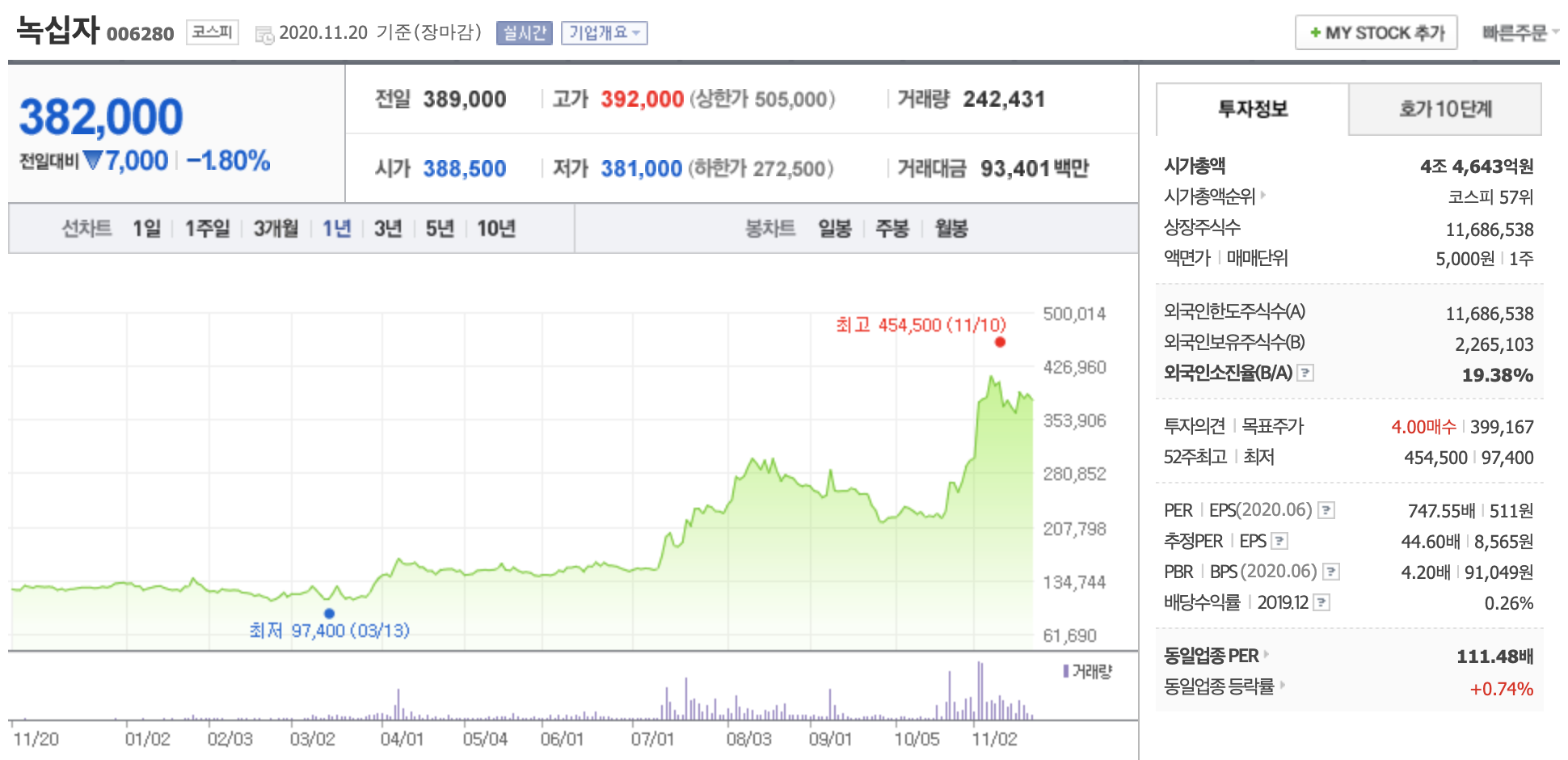 녹십자 주가는 여타 제약, 바이오 기업과 마찬가지로 백신, 치료제 소식에 큰 상승을 보였습니다.