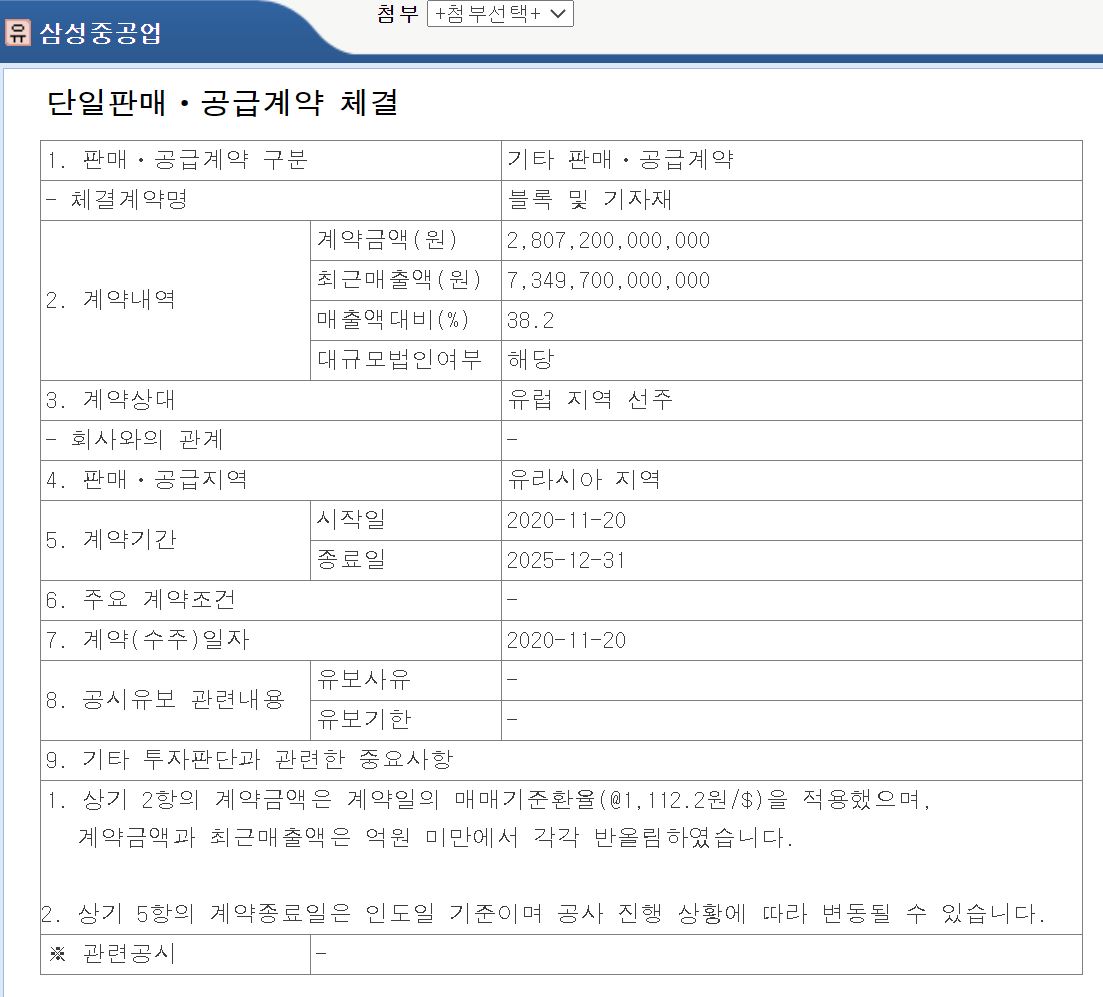 유럽 지역 선주와 25억 달러(약 2조 8,000억 원) 규모의 선박 블록, 기자재 공급 계약을 맺았습니다. 계약기간은 2025년 12월까지이며 이번 계약은 단일 선박 기준 역대 최대 규모입니다.