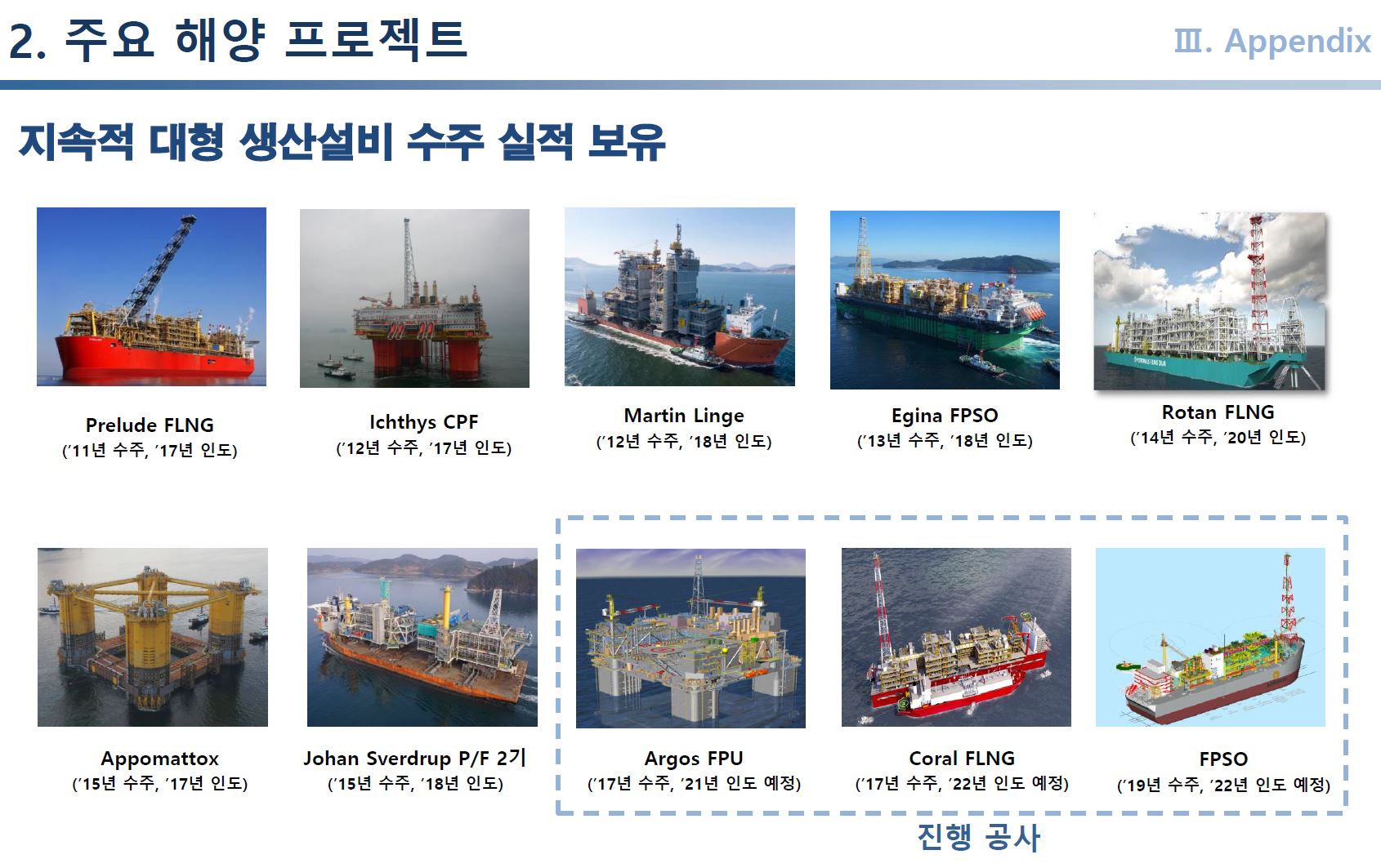 이번 유럽향 대형 수주에 이어 러시아 Arctic2, 모잠비크 LNG선 등 수주가 내정된 프로젝트 및 Bonga, 극지형 셔틀탱커 등 단독 협상 안건을 중심으로 연내 계약 타결을 추진하고 있습니다.