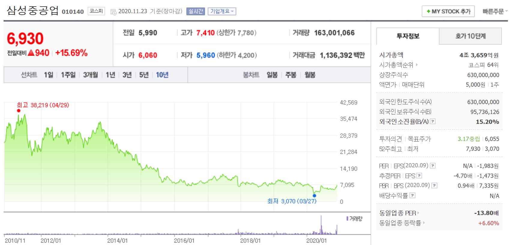 삼성중공업 주가는 호황기를 지나 끝없이 내려왔습니다. 수주 소식도 없고, 중국에 파이를 뺏기고, 수년간 적자를 이어오고 좋지 않은 소식만 가득했습니다.
