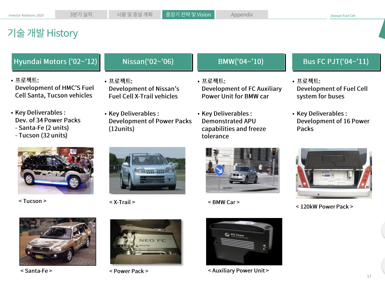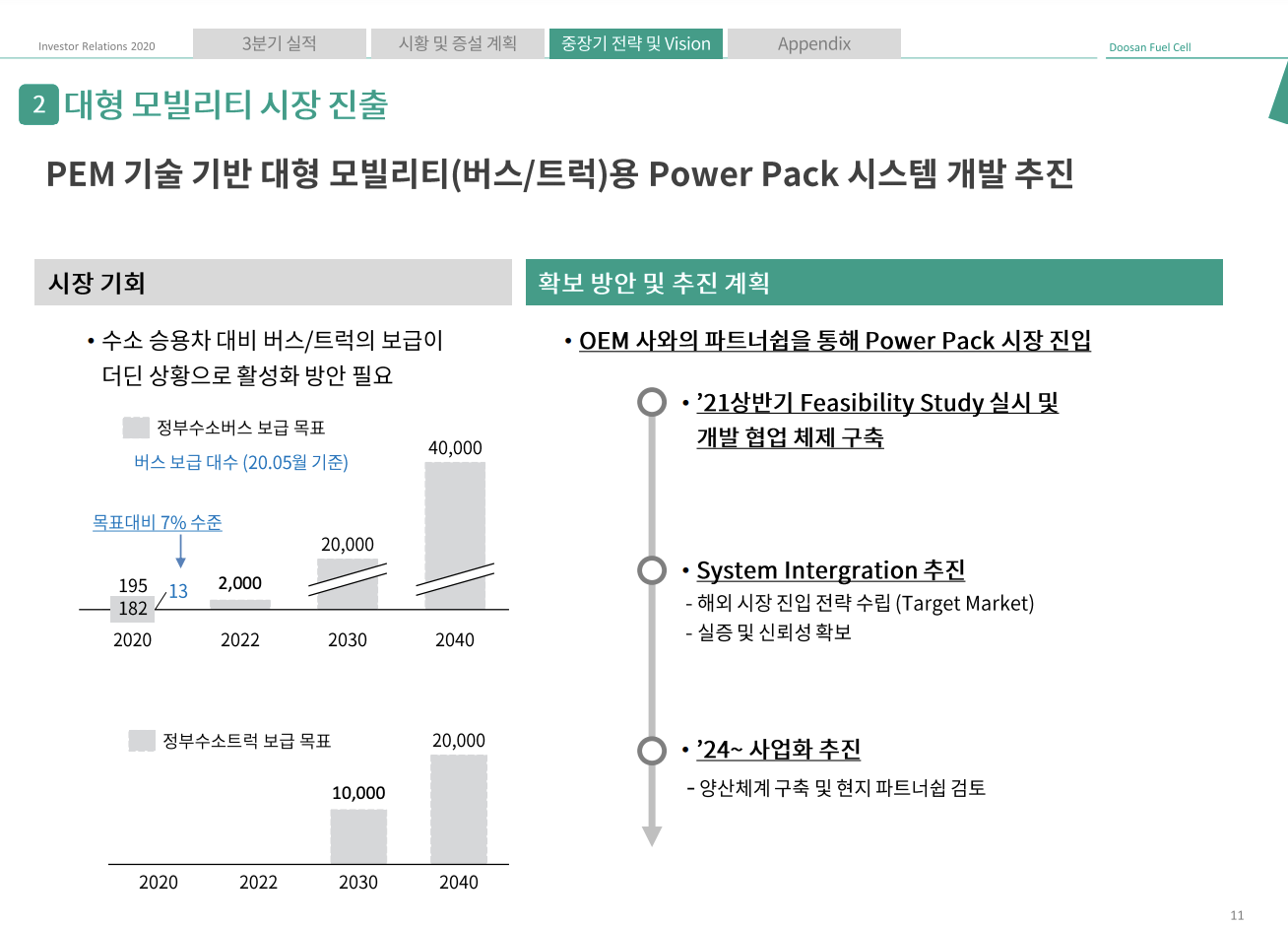 대형 모빌리티 시장도 진출할 계획인데요. 정부의 수소버스 보급으로 인해 향후 폭발적으로 증가할 수요에 맞춰 파워팩(Power pack) 시스템을 개발할 예정이며 이는 2024년 사업화할 예정입니다.