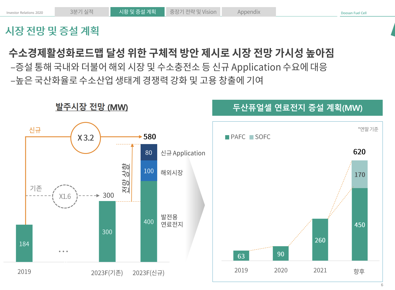 이에 두산퓨얼셀은 연료전지 생산 능력을 현재 90MW에서 내년 260MW, 향후 620MW까지 늘릴 계획입니다.