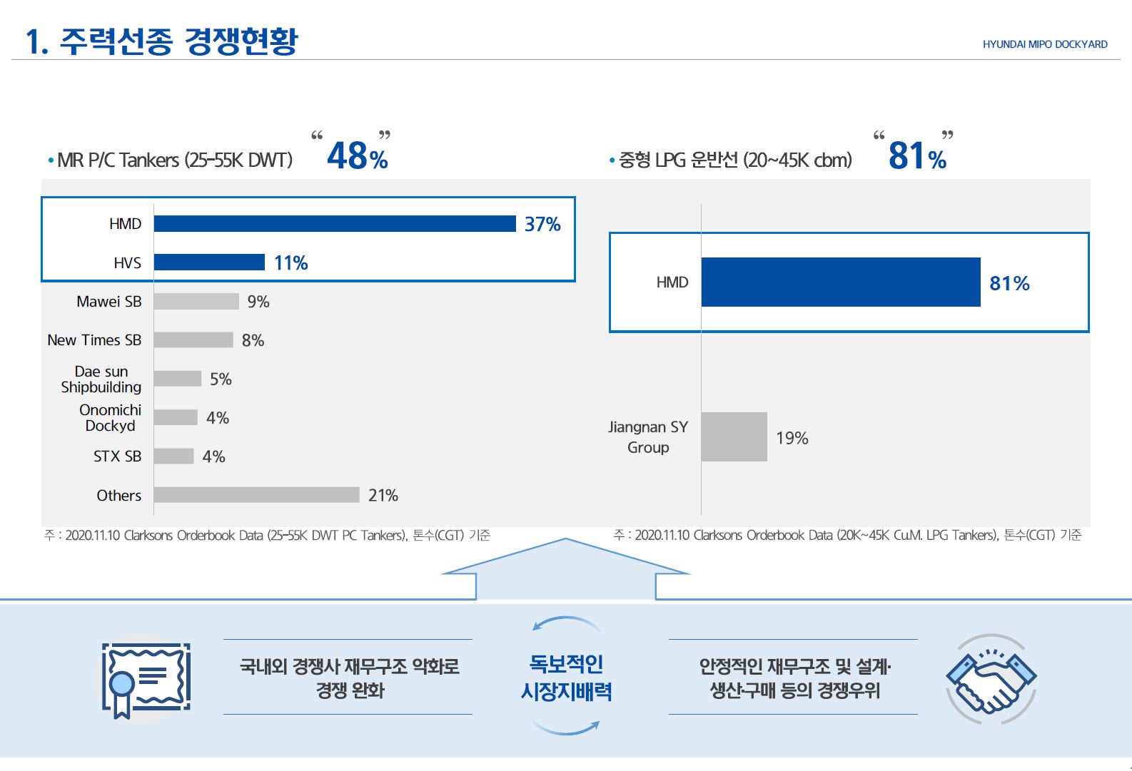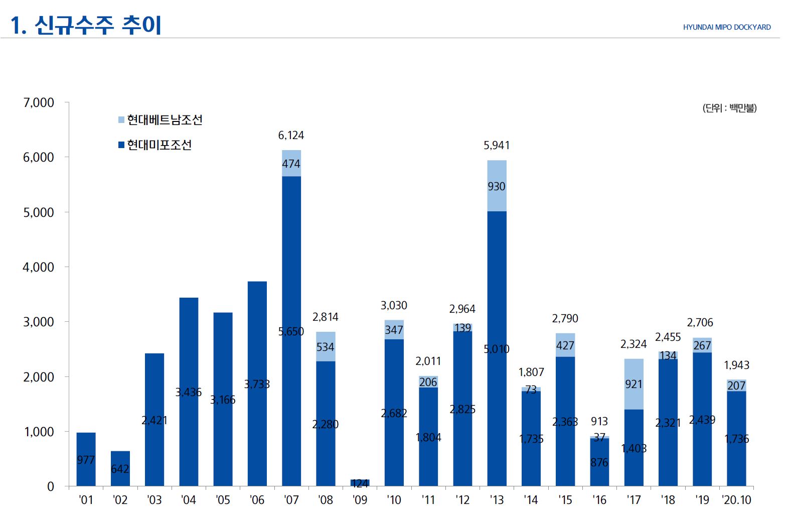 현대베트남 조선의 경우도 수익성이 좋은 P/C선 투입 비중 증대와 원가 절감 노력으로 영업이익이 대폭 증가했습니다. 현대미포조선의 영업이익은 113억 원, 현대베트남조선은 147억 원의 영업이익을 올렸습니다.