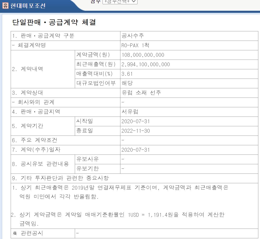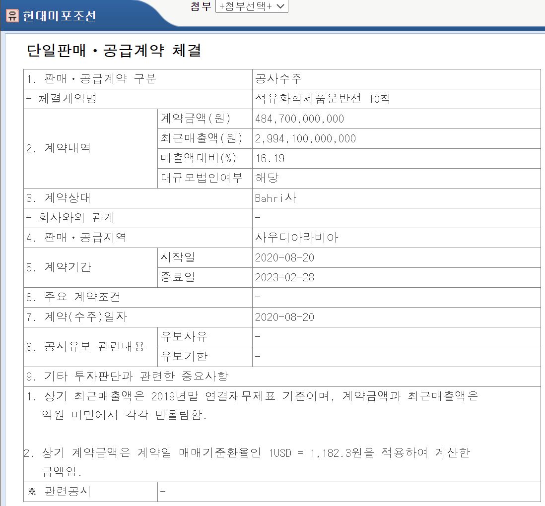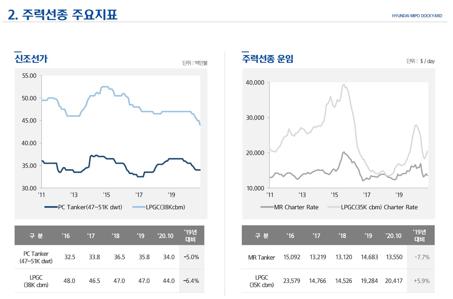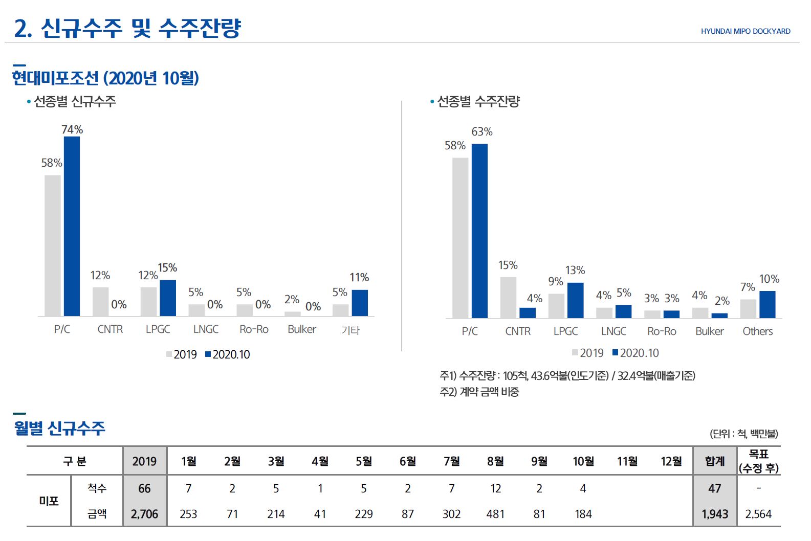 하지만 2020년 현대미포조선의 수주계획은 2조 9,600억 원이었지만 최근 목표를 수정해 25억 7,400만 불로 하양 조정했습니다. 코로나 19로 인한 피해를 넘기기 힘들었던 것으로 보입니다.