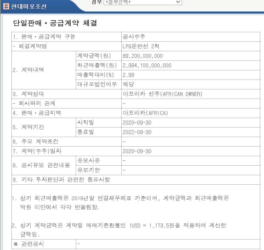 현대미포조선이 3분기 실적을 공시했습니다. 매출은 감소했으나 영업이익 증가를 보였습니다.