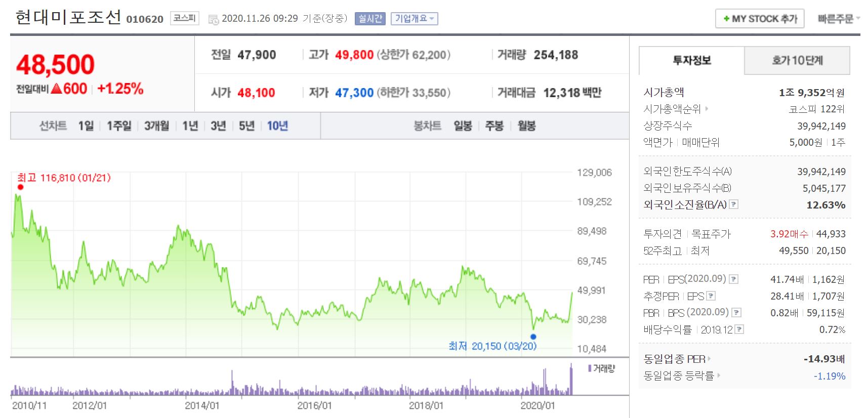 현대미포조선 주가는 코로나 19 이후 주춤하다가 최근 수주소식과 함께 급등을 이어가고 있습니다.