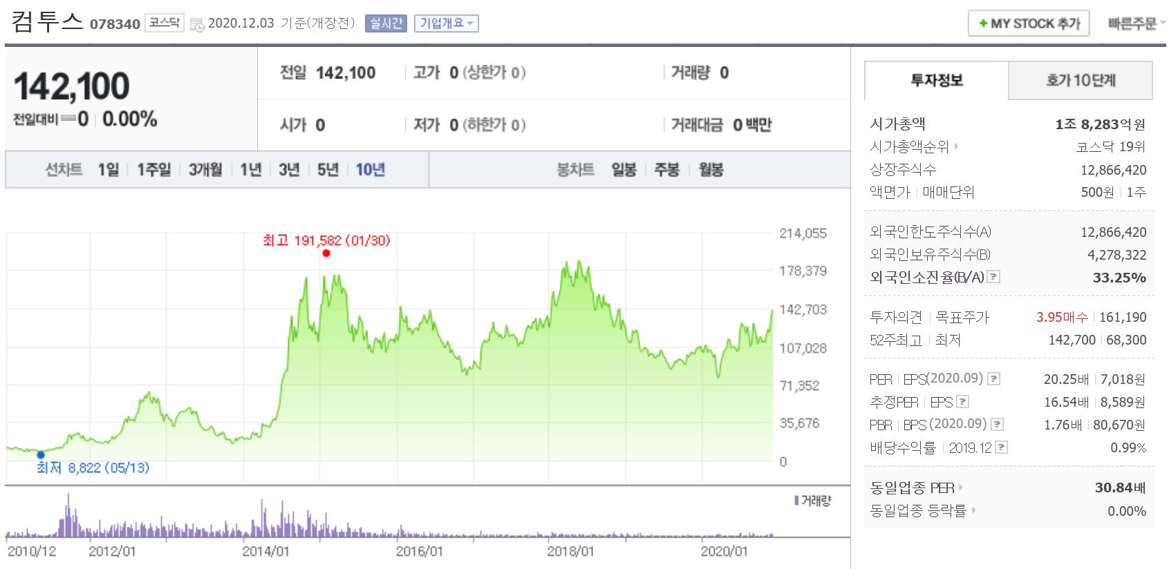컴투스 주가는 코로나 19 이후 급등했습니다. BBIG(배터리, 바이오, 인터넷, 게임) 관련주가 주목을 받으면서 좋은 상승세를 보였으며 최근 조정을 받다가 고개를 들고 있습니다.