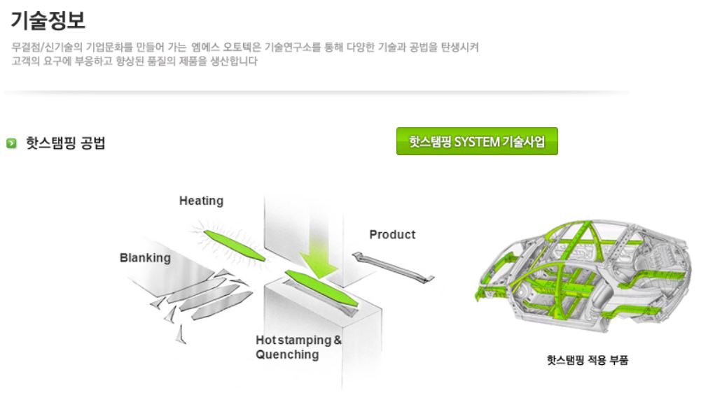 명신산업의 핵심 기술 핫스탬핑은 차량 부품을 경량화하고 강도를 높이는 기술로 주목을 받고 있는 상황입니다.