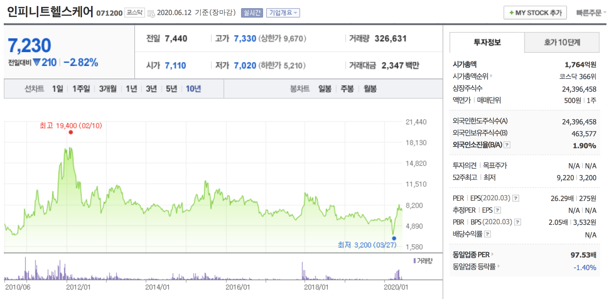 인피니트 헬스케어는 메디페이스와 주식회사 쓰리디메드의 신설합병을 통해 설립된 회사로, 의료용 소프트웨어를 판매하고 유지보수하는 서비스를 주요사업으로 영위하고 있음. 국내 PACS(의료기기에서 획득한 영상을 의료 표준에 따라 디지털화하여 저장, 전송 및 관리하는 시스템) 시장 점유율 1위 기업입니다. 2019년 삼성서울병원에 디지털 병리 솔루션을 공급하면서 주목을 받기도 했습니다.