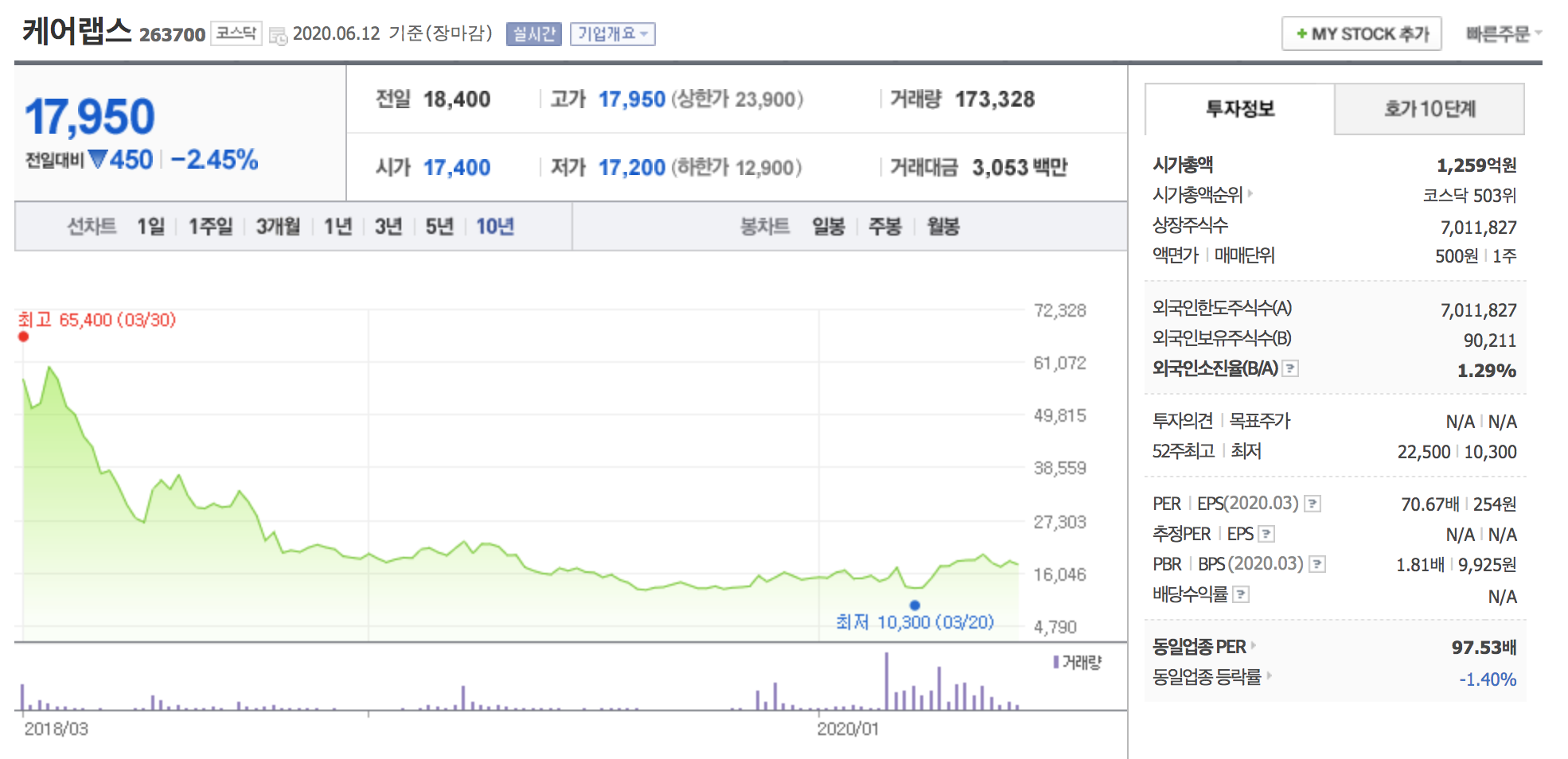 케어렙스는 디어플랫폼, 디지털마케팅, IT솔루션을 주요 사업으로 영위 중이며 국내 유일 병/의원 대상 디지털마케팅 사업을 진행하며 국내 1위 헬스케어 플랫폼을 기반으로 효과적인 마케팅 솔루션을 제공하고 있습니다. 헬스케어 앱 '굿닥'과 성형,미용 정보앱 ‘바비톡’을 운영중이며 꾸준한 매출 성장세를 보여주고 있습니다. 고령화, 비대면 의료가 부각되면서 성장이 기대되는 회사입니다.