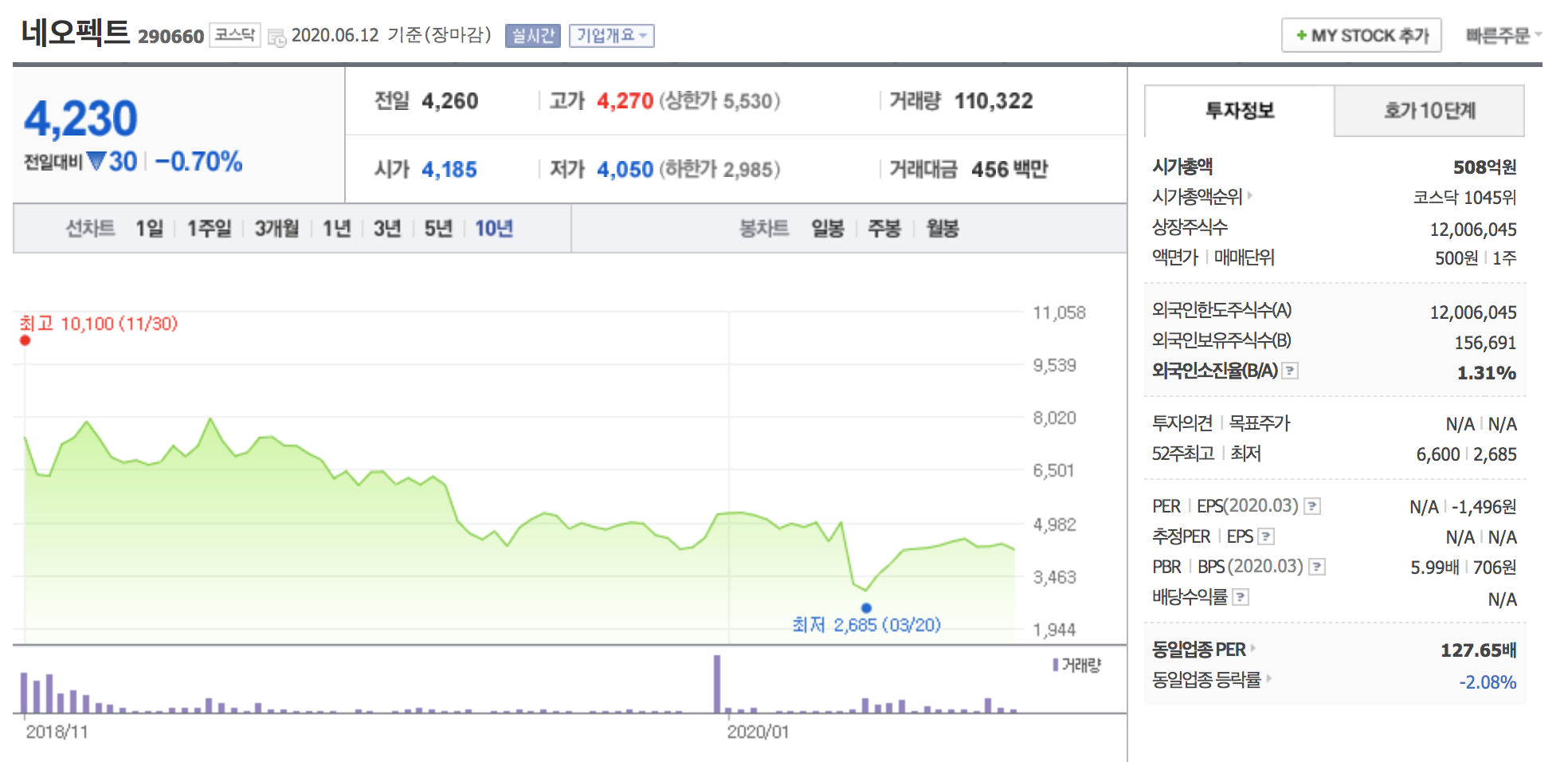 네오펙트는 AI 및 IoT 기술을 기반으로 재활훈련을 위한 재활솔루션 및 재활의료기기 등을 연구개발, 생산, 판매합니다. 대표 제품인 '라파엘 스마트 글로브'는 재활의료기기에 게임을 접목시켜 주목을 받으며 재활의료기기의 패러다임을 바꿨다는 평을 받기도 했습니다. 하지 재활기기 신제품인 ‘스마트 밸런스’가 ‘CES 2020 혁신상’을 수상 또 수상하며 주목을 받고있습니다. 매출은 꾸준히 큰폭으로 증가하고 있지만 영업손실도 꾸준히 큰폭으로 증가하고 있습니다.