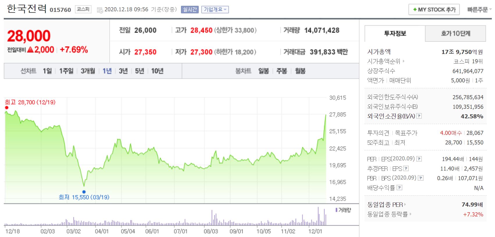 유진투자증권은 한국전력 목표주가를 32,000원에서 43,000원으로, 하나금융투자는 30,000원에서 39,000천원으로, NH투자증권은 26,000원에서 33,000원으로, KTB투자증권은 28,000원에서 31,000원으로 상향조정했습니다.