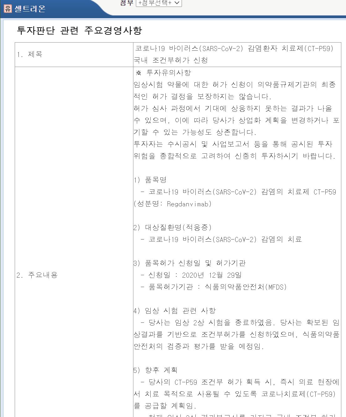 셀트리온이 코로나 19 치료제(렉키로나주) 임상 2상 결과를 발표했고 반응 엇갈리고 있습니다.