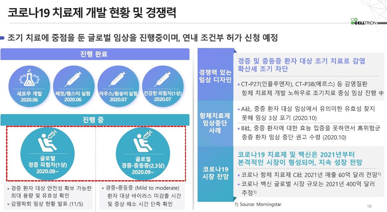 향후 셀트리온은 긍정적인 임상 2상 결과를 바탕으로 10여 개 국가에서 임상 3상을 진행할 계획이며 해외 주요국 허가 신청 역시 진행할 계획이며 현재 최대 200만명분의 치료제 생산 계획을 준비하고 있는 상황입니다.