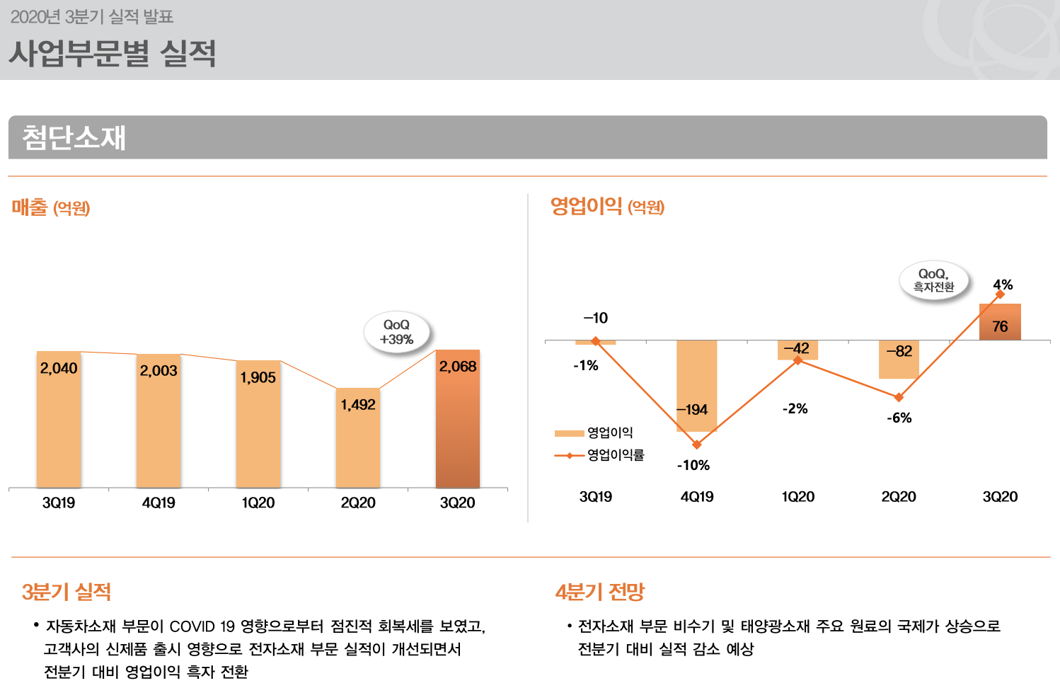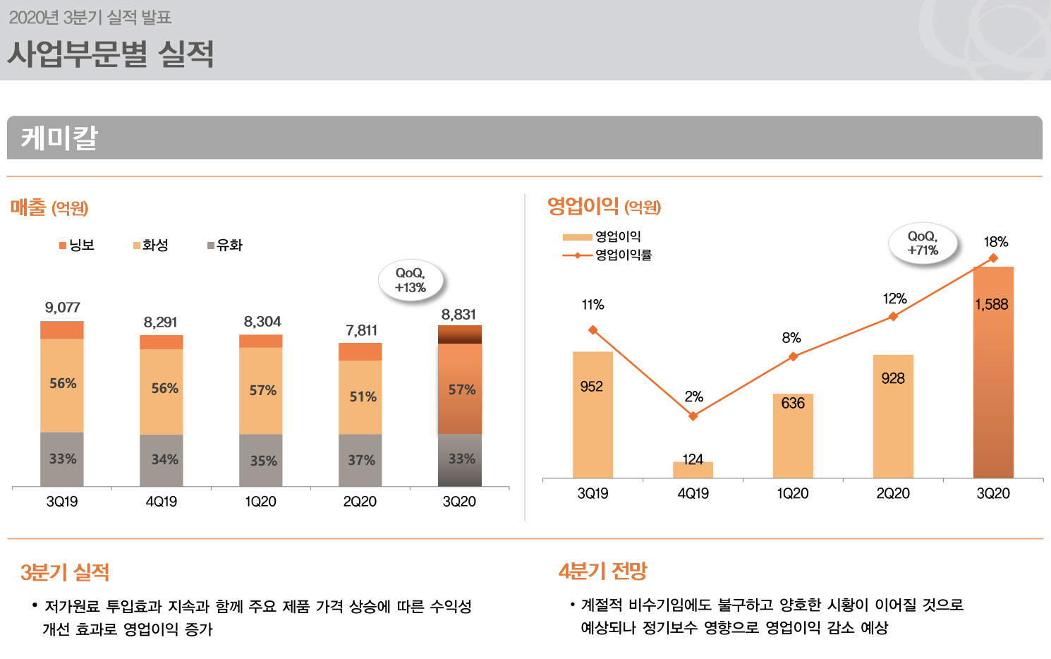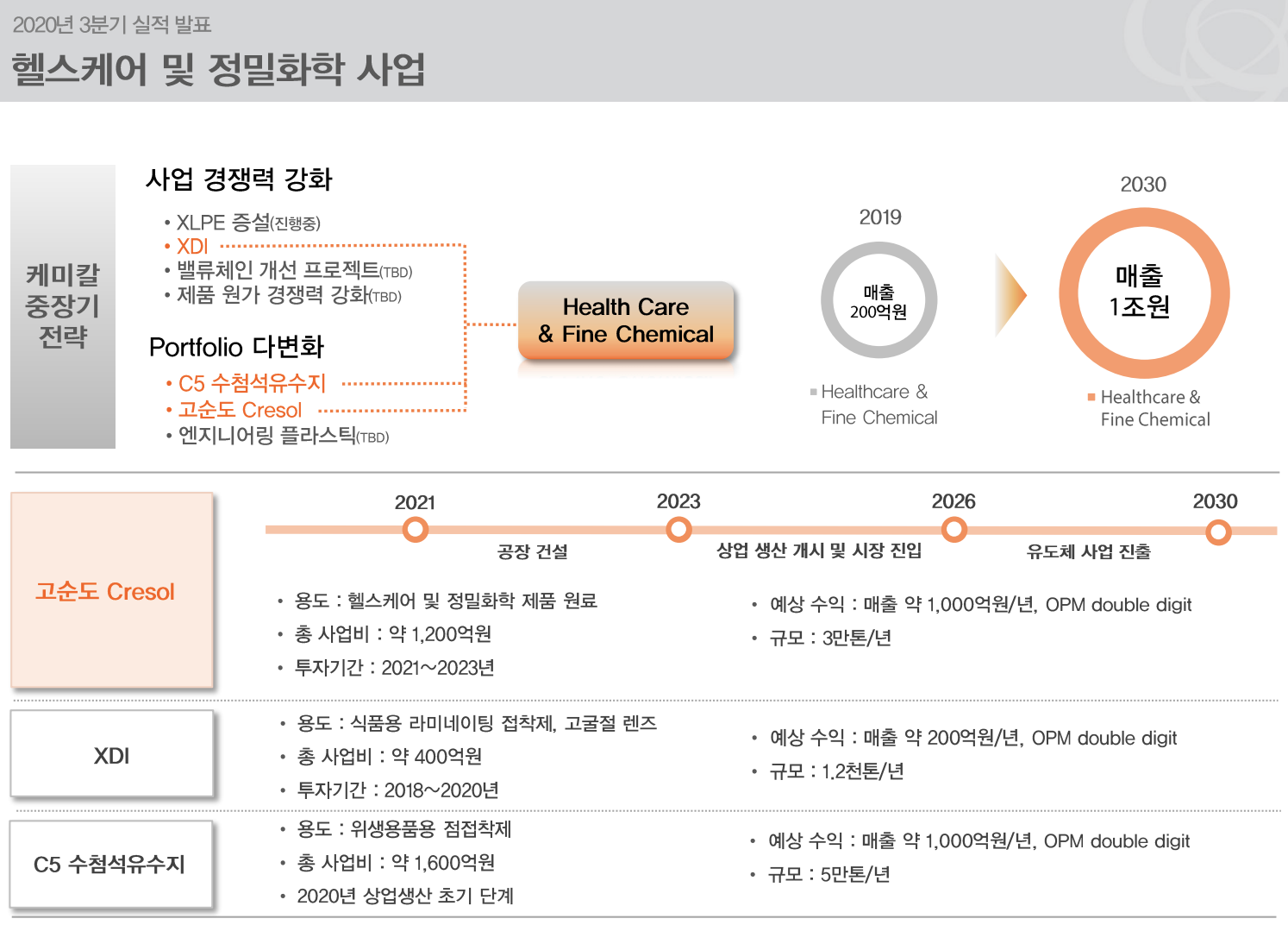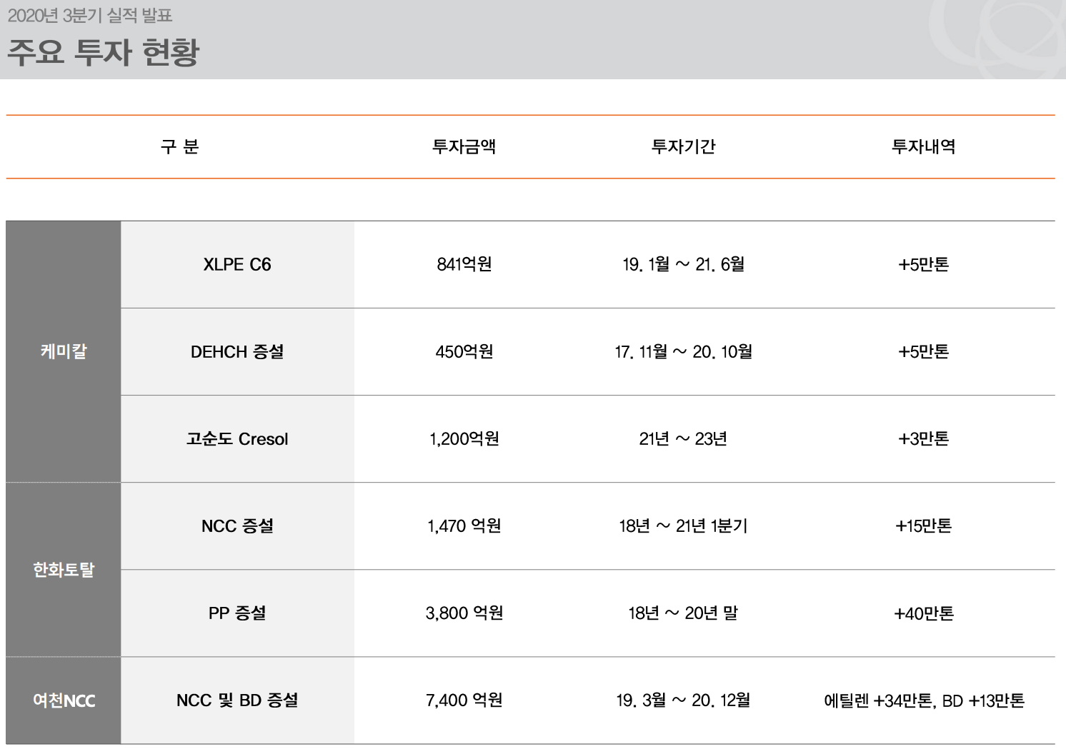 태양광, 수소 이외에도 케미칼 부문도 좋은 소식을 알려왔습니다. 친환경 가소제(플라스틱에 유연성을 부여하는 첨가제) '코데치' 증설을 마무리했습니다.