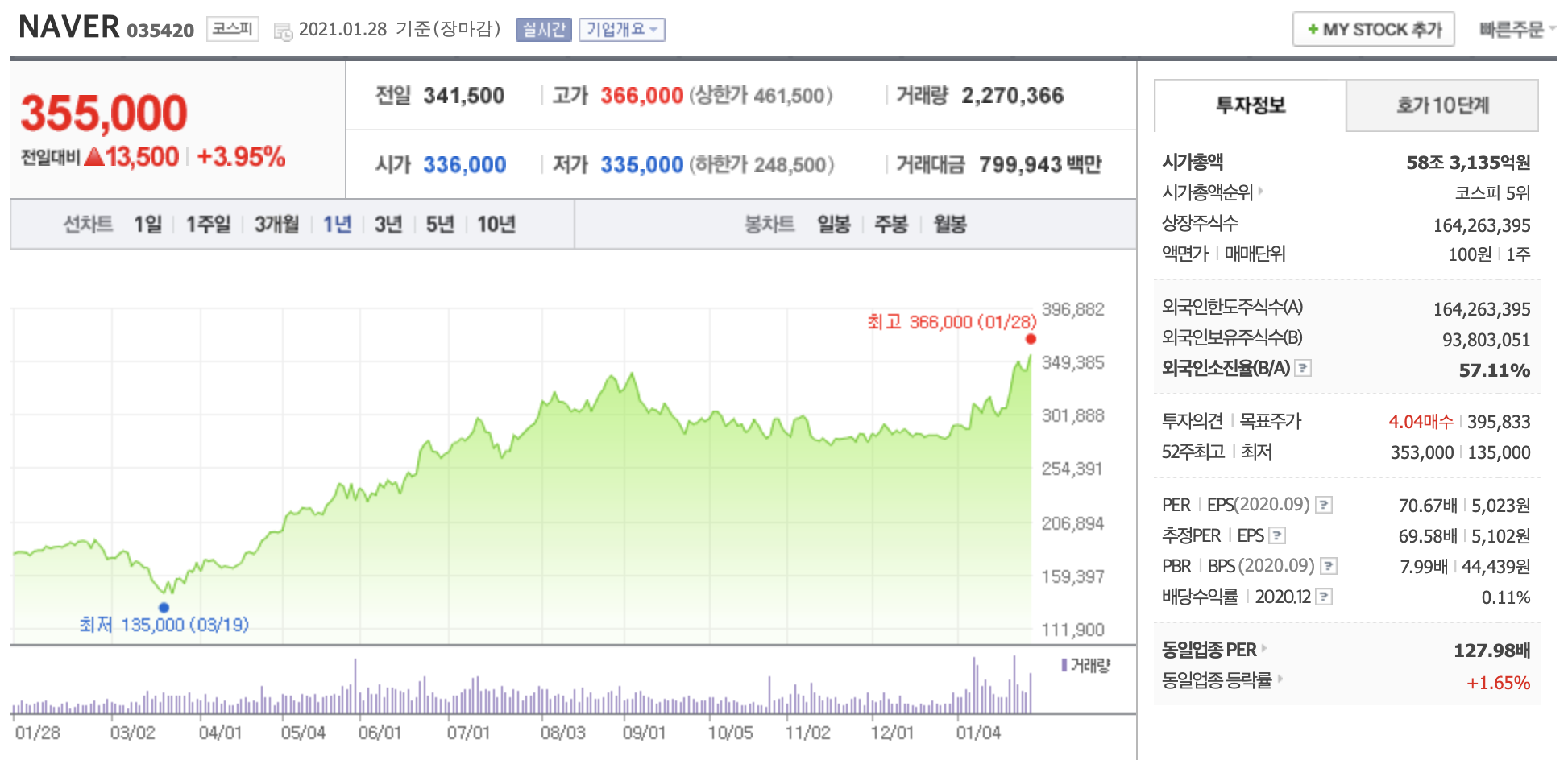 하락장 속에 호실적, 좋은 뉴스들을 내놓으며 혼자 달려가고 있는 네이버입니다. 2020년 연간 매출은 5조 3,041억 원, 영업이익은 1조 2,153억 원을 돌파하며 영업이익 1조 클럽에 들어온 네이버입니다.