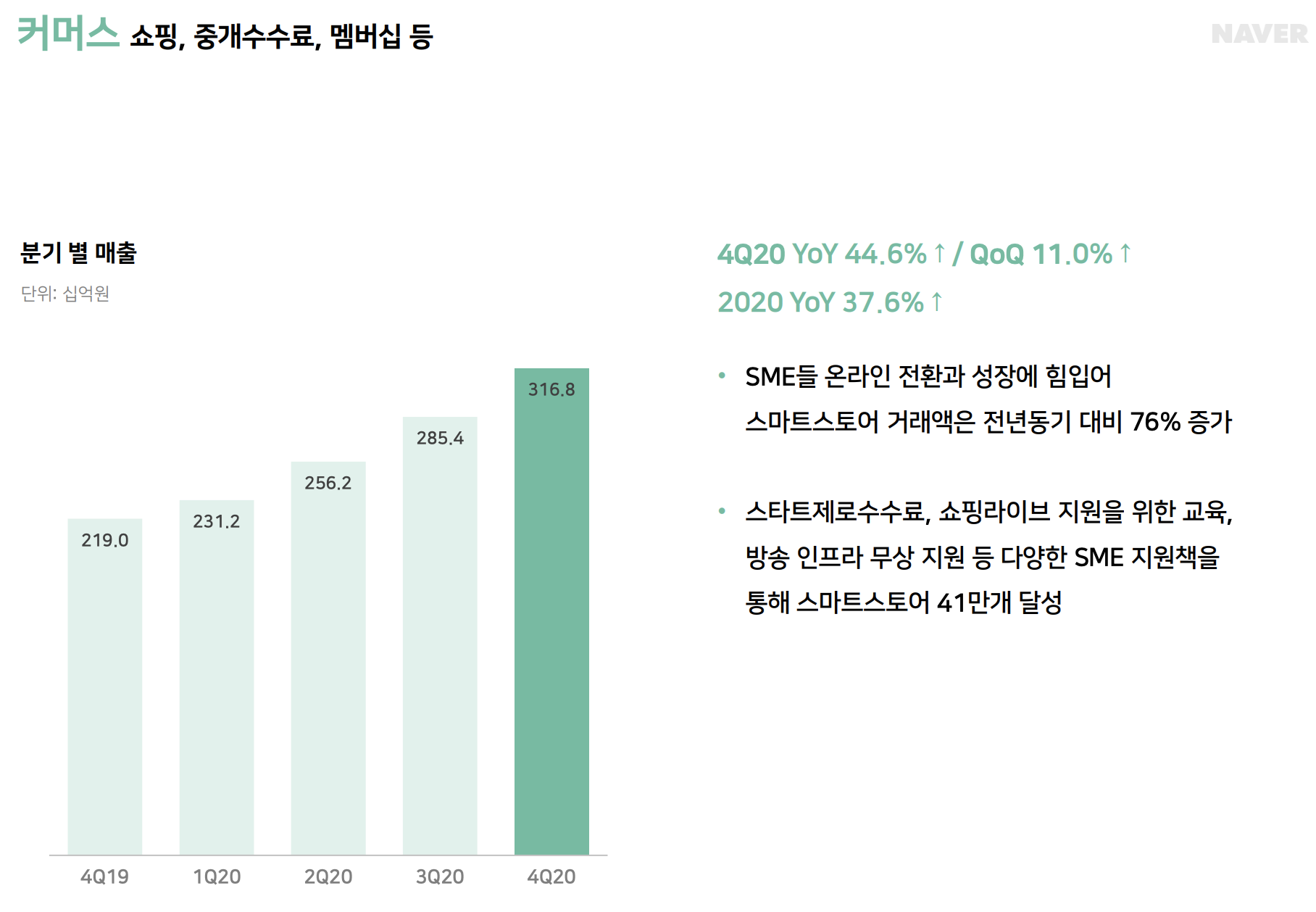 커머스 부분은 연간기준 전년동기대비 37.6%, 4분기 기준 전분기 대비 11% 성장했습니다.