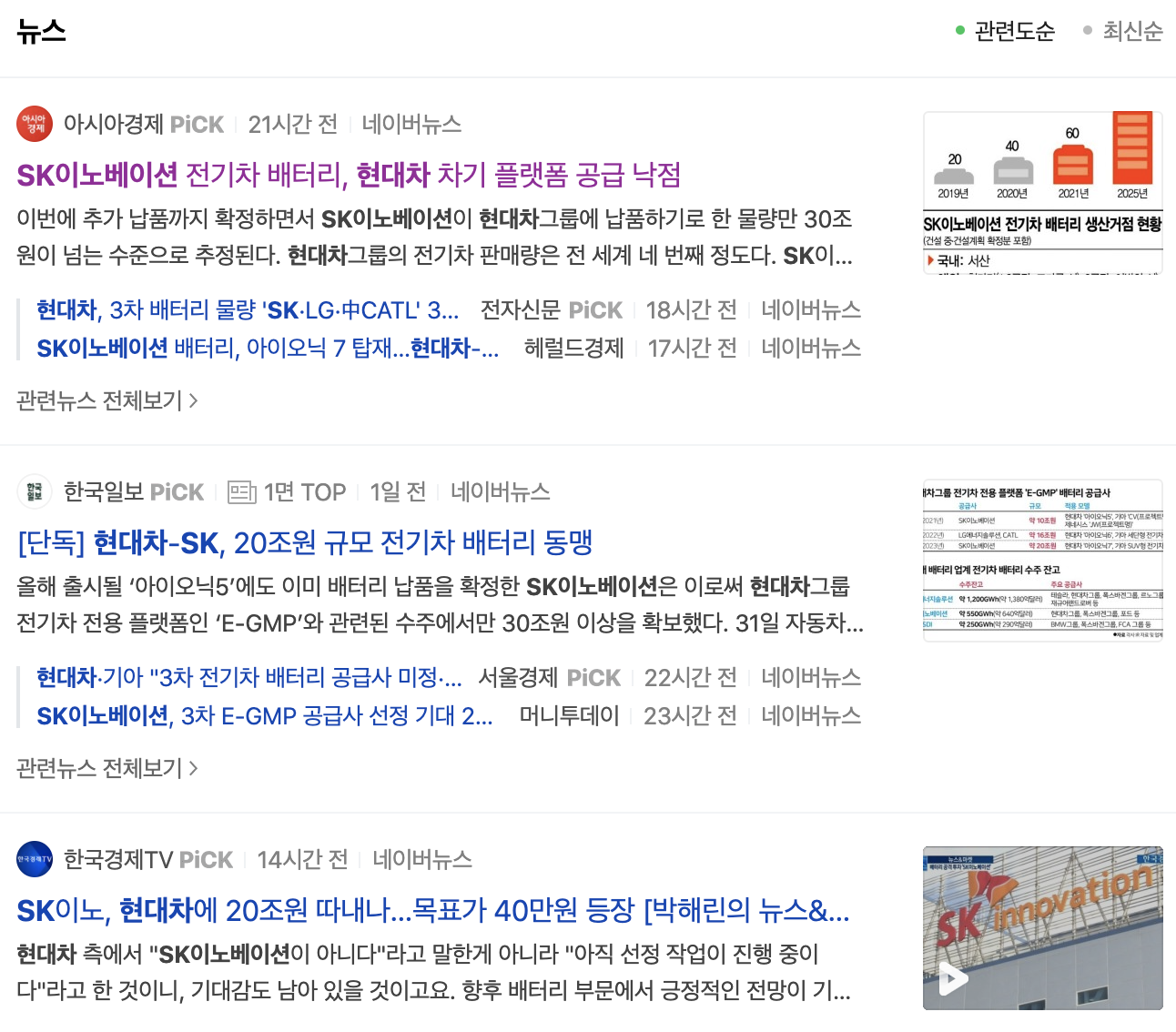 이에 SK이노베이션은 최종 확정은 아닌 것으로 알고 있다며 조심스러운 모습을 보였으며 현대차그룹의 경우 3차 물량은 복수의 공급업체를 선정할 예정으로 현재 선정 작업을 진행 중이라고 밝혔습니다.