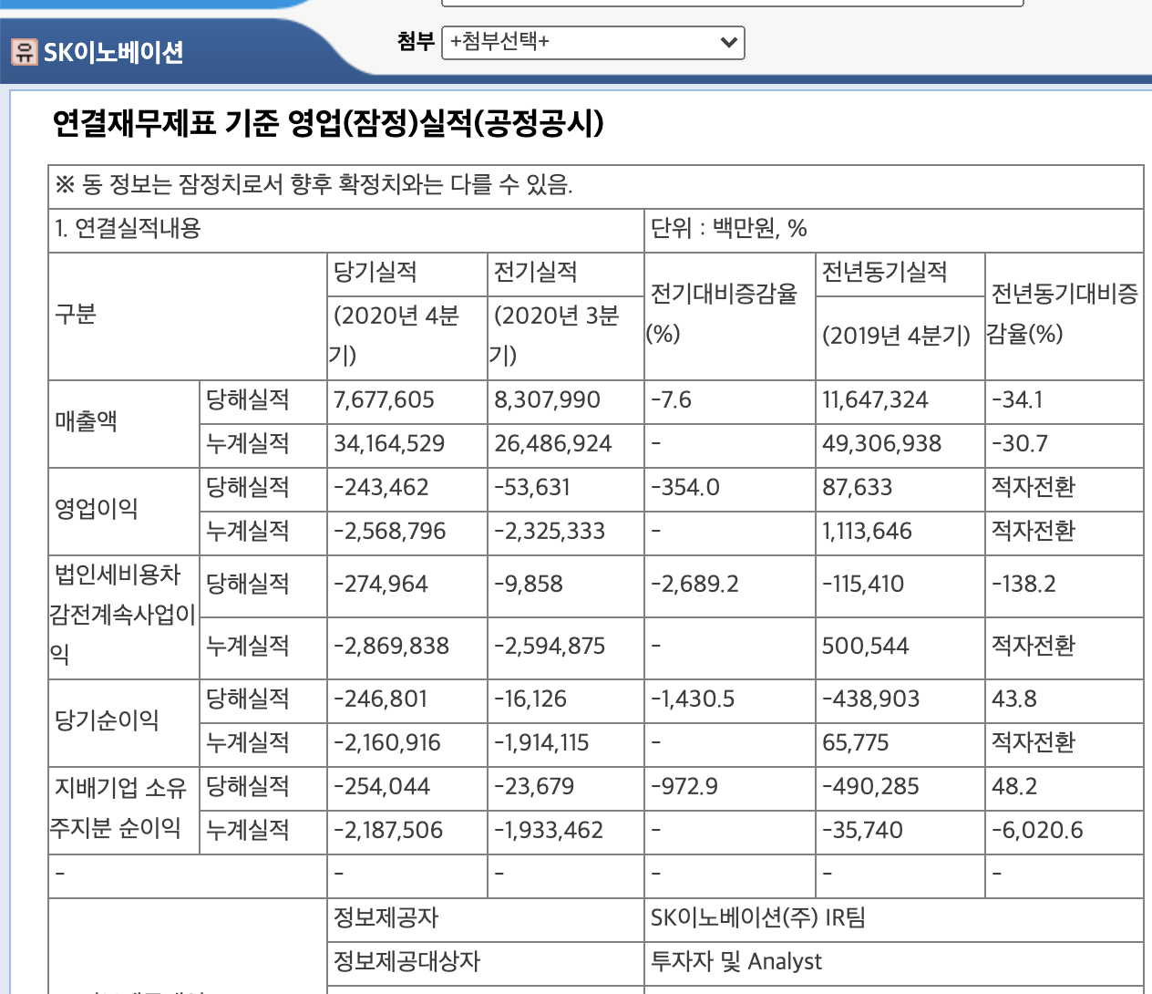 SK이노베이션 실적