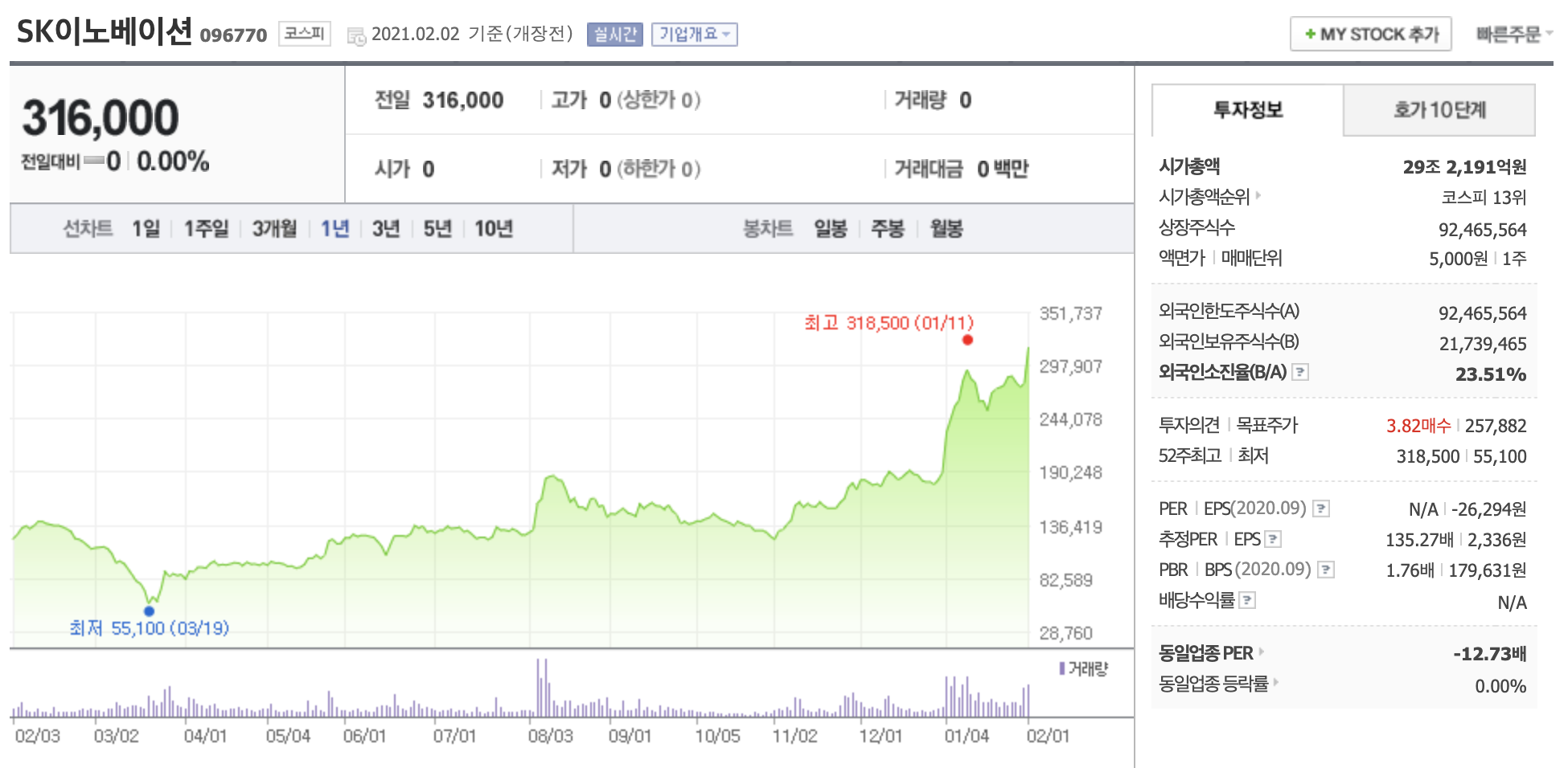 SK이노베이션 주가는 코로나 19 이후 가파른 상승을 보였습니다. 2021년 1월 들어 배터리 기업중 가장 강한 주가 흐름을 보이고 있으며, 현대차 'E-GMP' 소식에 10~20%는 가뿐히 뛰고 있는 상황입니다.