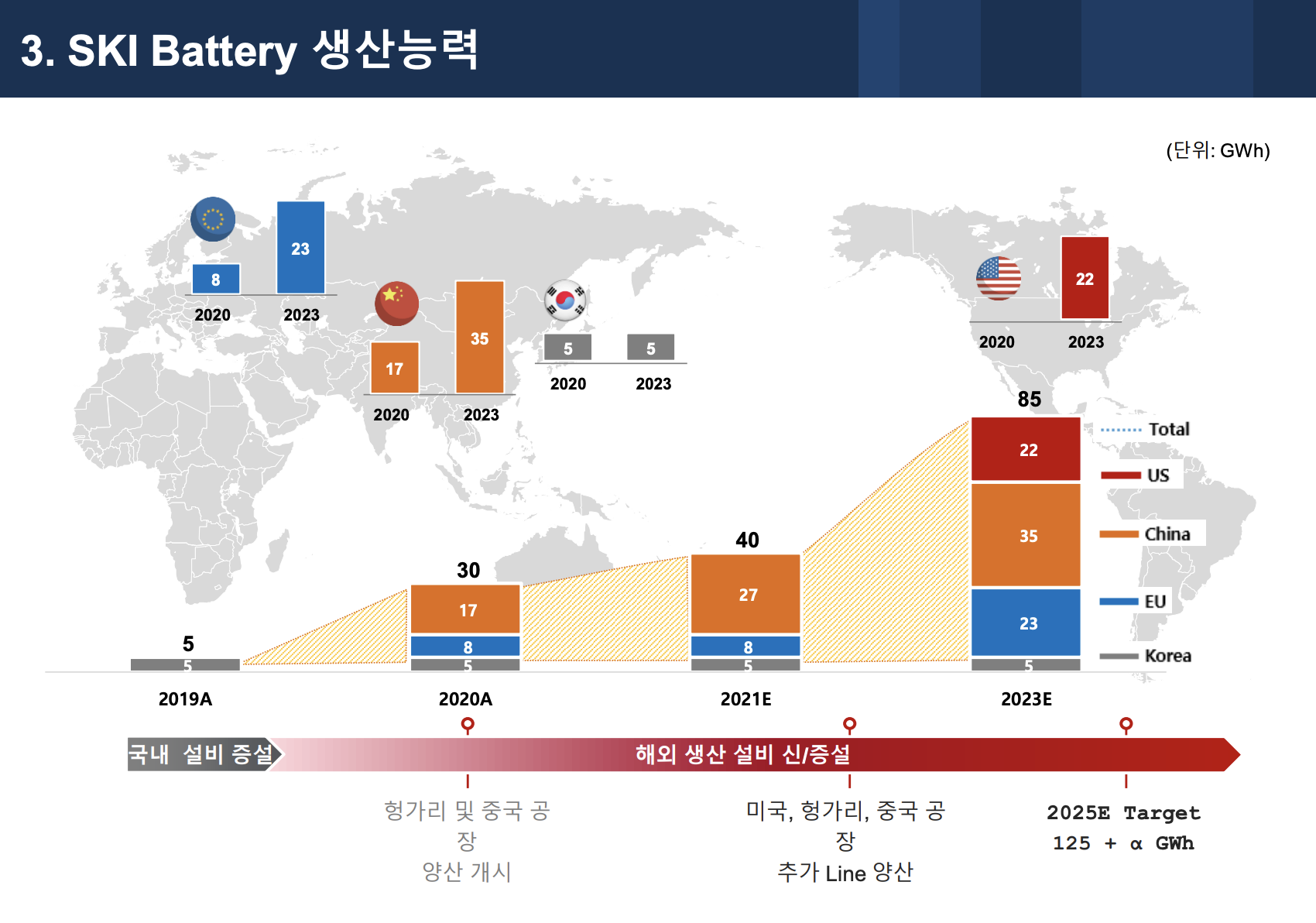 미국 조지아주에 건설을 진행중이 9.8GWh 배터리 공장 역시 2022년 1분기, 11.7GWh 규모의 제 2공장이 2023년 1분기부터 양산에 들어갈 계획입니다.