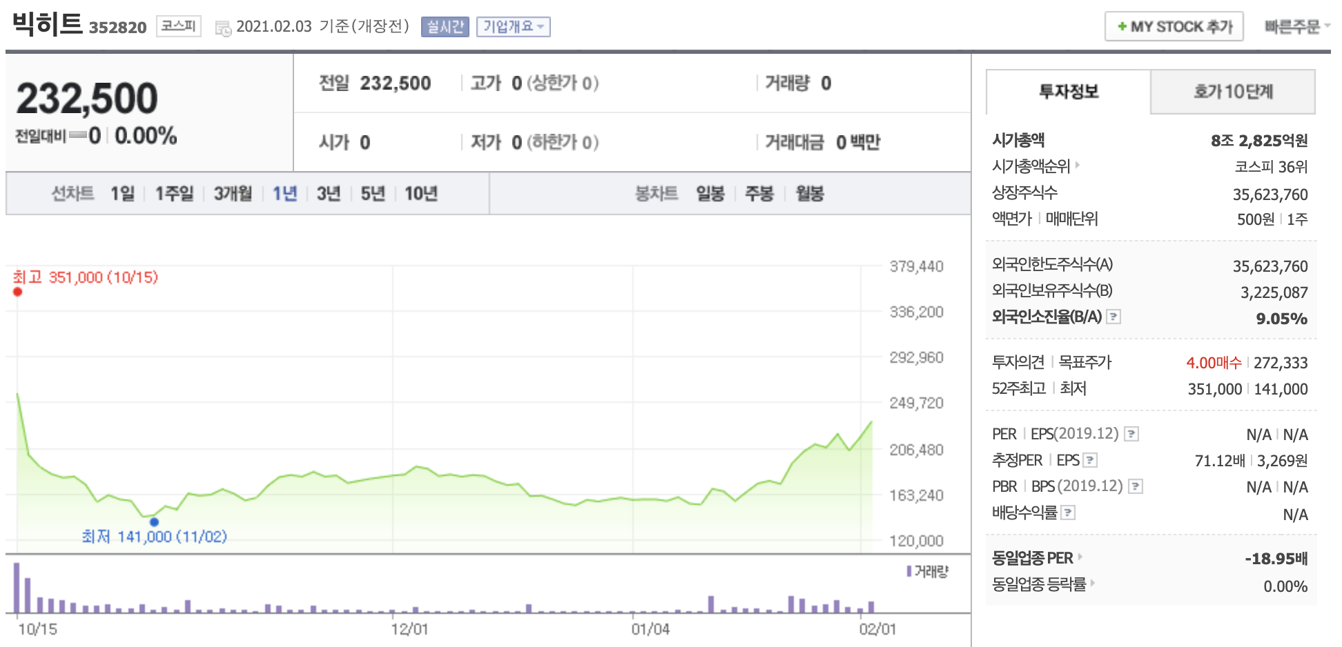 빅히트 주가 전망 한달새 45% 급등