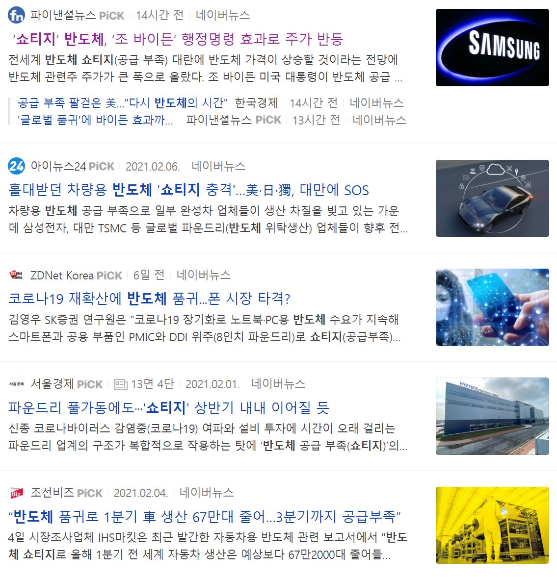2월초 수출입 통계에서 승용차는 102.4%, 자동차 부품은 80.6% 증가하며 자동차 산업 자체의 움직임이 심상치 않을 상황이기에 차량용반도체 쇼티지 상황이 하반기 더욱 심화될 것이라는 전망도 일리가 있어보입니다.