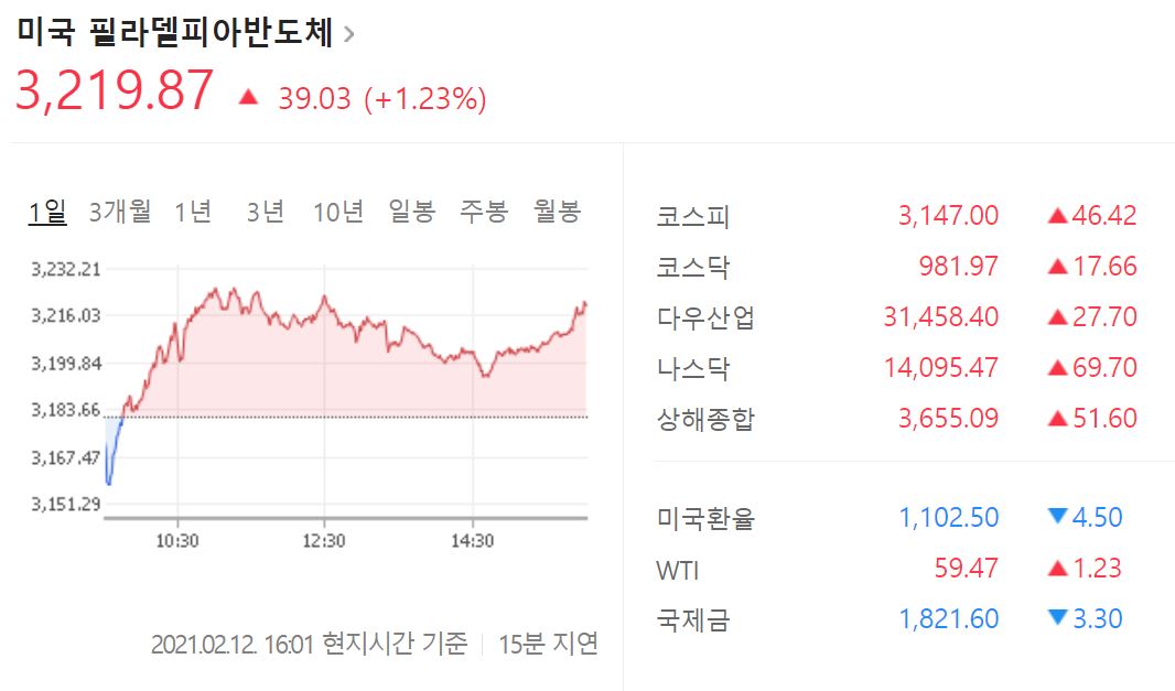 이에 지난 12일 필라델피아반도체지수(SOX)는 3219.87 포인트로 마감하며 사상 최고치를 기록하기도 했습니다.