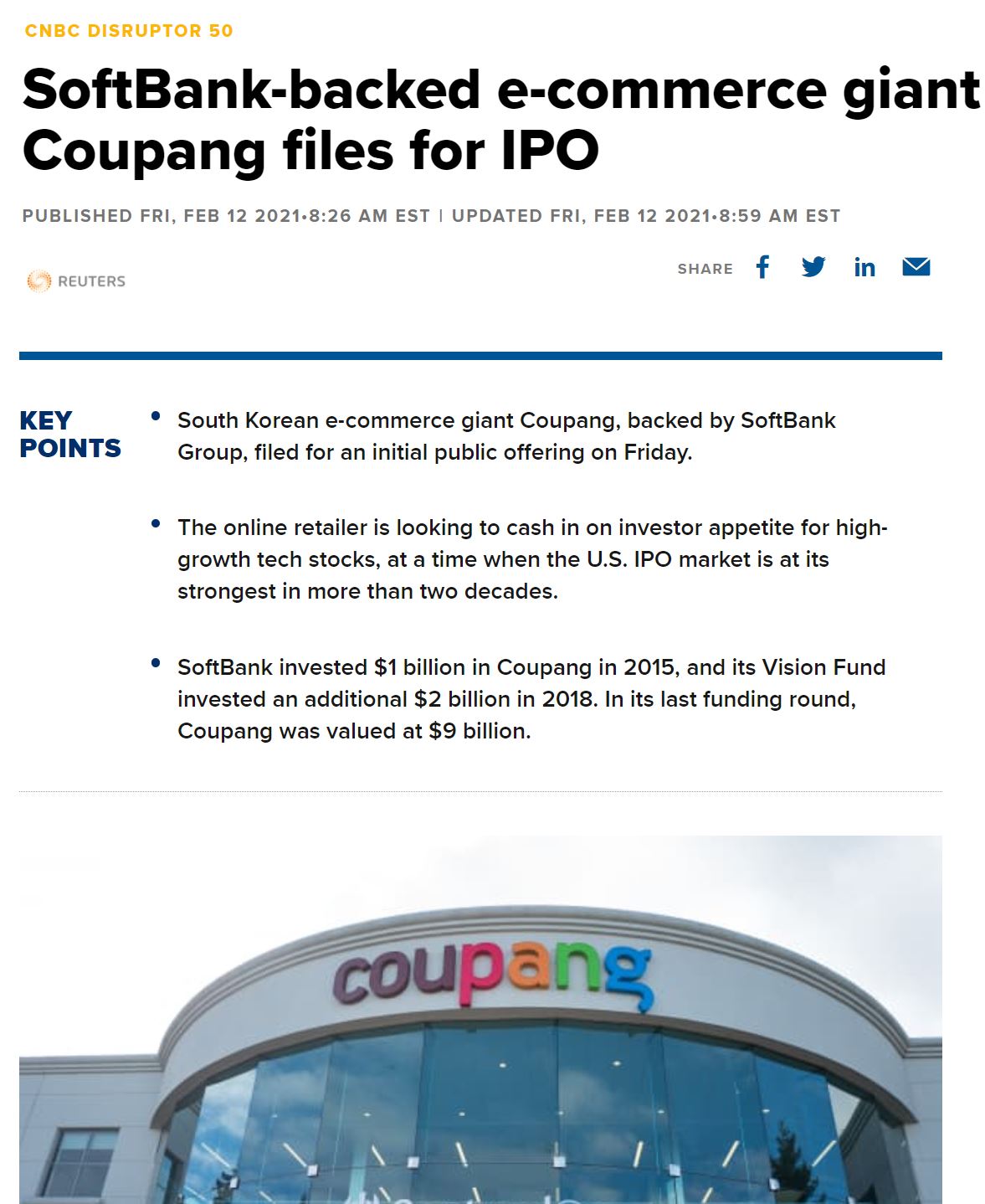 외신들은 2014년 알리바바의 186조 원 규모의 IPO 이후 최대 규모의 미국 외 국가 기업의 IPO가 될 것이라고 말하고 있습니다.