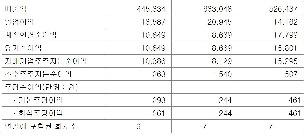 매출 1,607억 원 / 영업이익 42억 원 / 당기순이익 3억 원