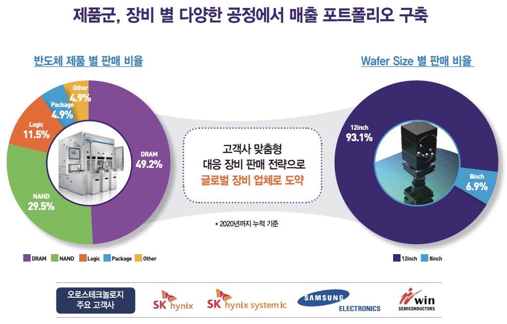 주요 고객사로는 삼성전자, SK하이닉스, DB하이텍, TSMC, 윈반도체, 소니, 인텔, BOE, SMIC, 화웨이까지 글로벌 주요 반도체 기업들을 두고 있습니다.