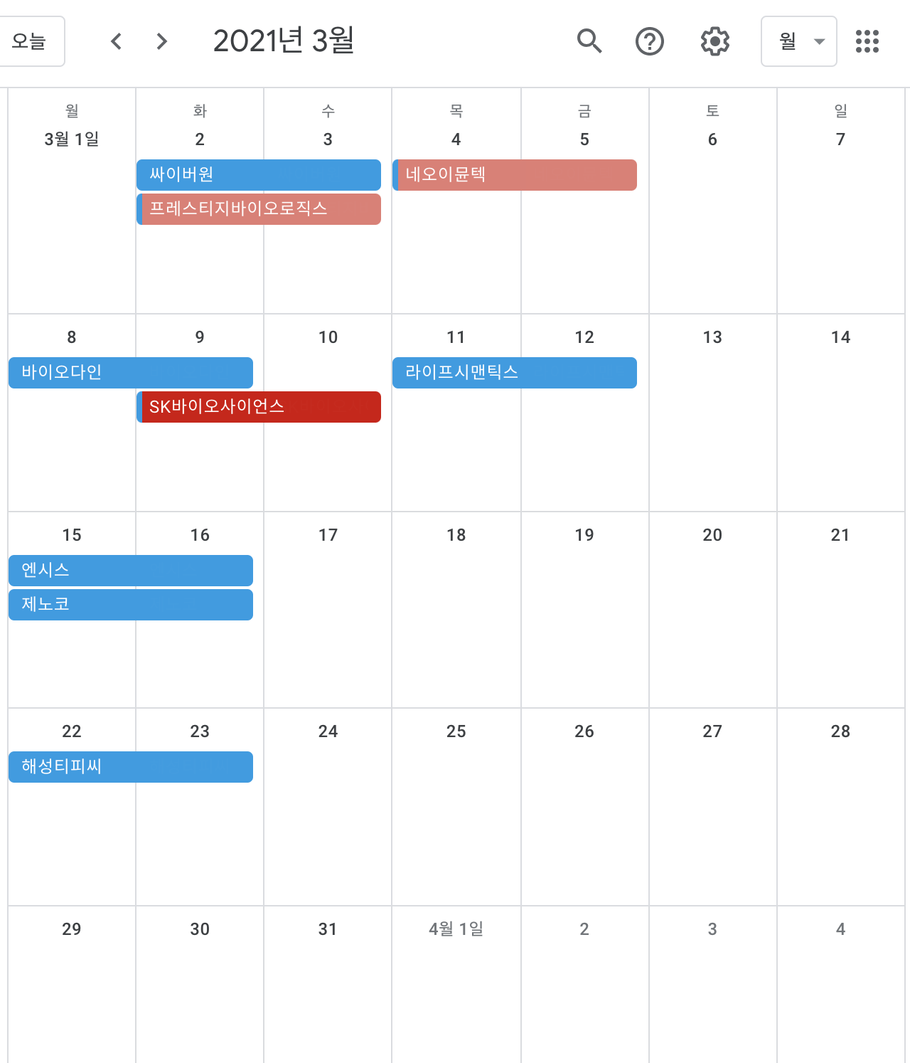 최근 상장한 피비파마 관계사인 프레스티지바이오파마, 제넥신이 최대주주로 있는 면역항암제 개발 업체 네오이뮨텍, 마지막으로 메가히트가 예상되는 SK바이오사이언스, 2차전지 장비주인 엔시스가 기대되네요!