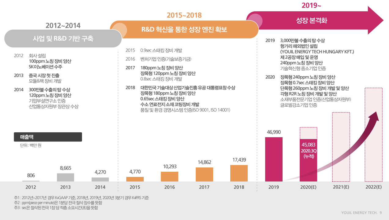 2015년 47억에 불과하던 매출이 2018년 174억, 2019년 469억 원, 2020년 3분기까지 450억 원의 매출을 올리면 엄청난 성장세를 보이고 있습니다.