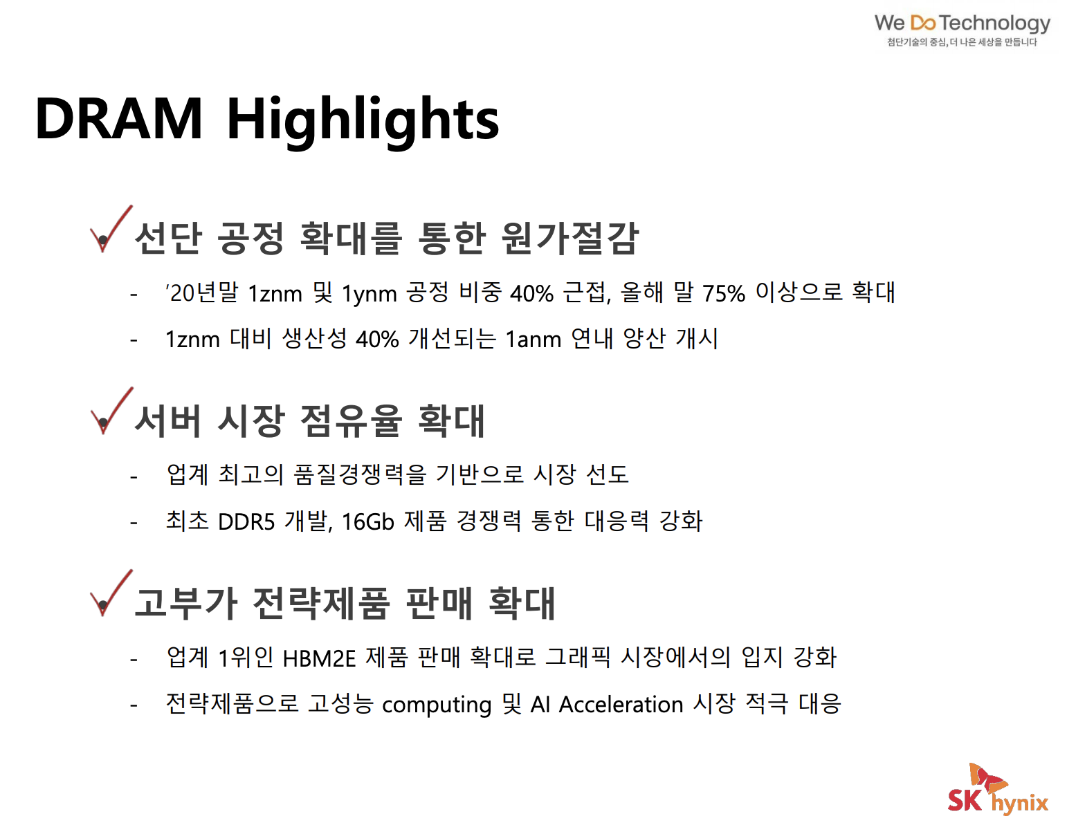 SK하이닉스는 D램뿐만 아니라 낸드에서도 지속적인 투자와 혁신을 만들어갈 계획입니다. 지난해 약 11조 원 규모의 인텔 낸들 사업 인수 계약을 체결하며 시장 점유율 확대에 나섰습니다.