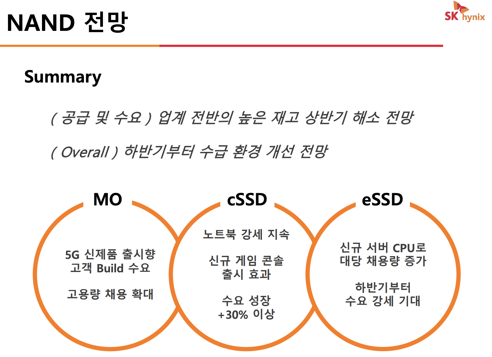 현재 낸드의 경우 D램 미세화 공정과 마찬가지로 집적도를 높이는 경쟁이 치열한 상황 속에서 SK하이닉스는 인텔의 SSD 기술력도 확보하며 낸드 기반의 SSD 영향력을 더욱 강화하겠다는 전략입니다.