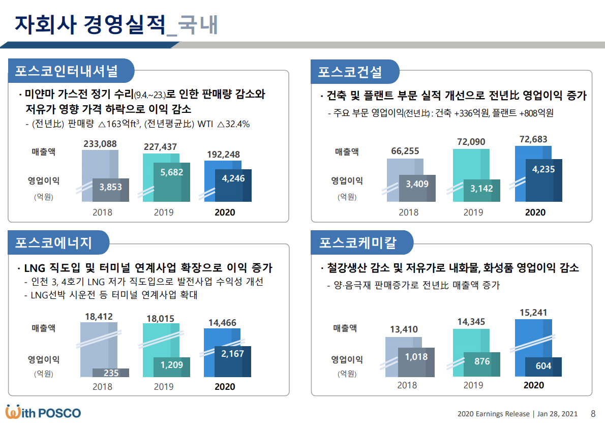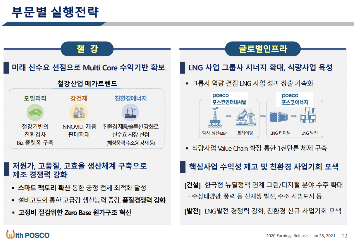 포스코가 코로나 19 이후 원자재 값 상승으로 좋은 실적을 보이고 있으며, 2018년 인수한 리튬 호수가 잭팟을 터뜨렸고, 수소 사업에도 진출하며 변모를 꾀하고 있습니다.