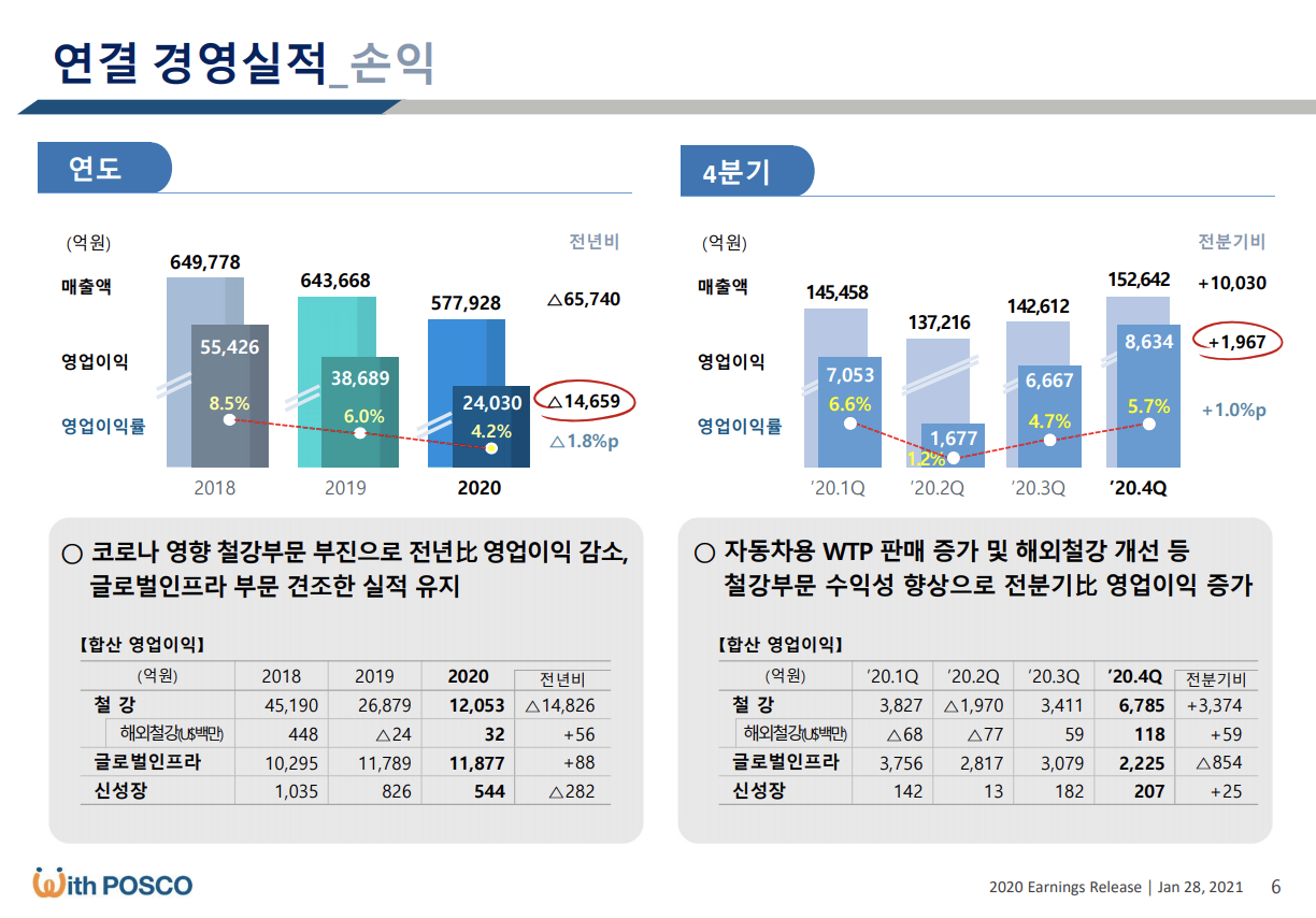 원자재 가격의 강세로 1분기 분기 영업이익 1조 원대를 회복할 것으로 예상되고 있으며 기관, 외국인 매수세도 꾸준히 유지되고 있어 눈여겨볼 필요가 있어보입니다.