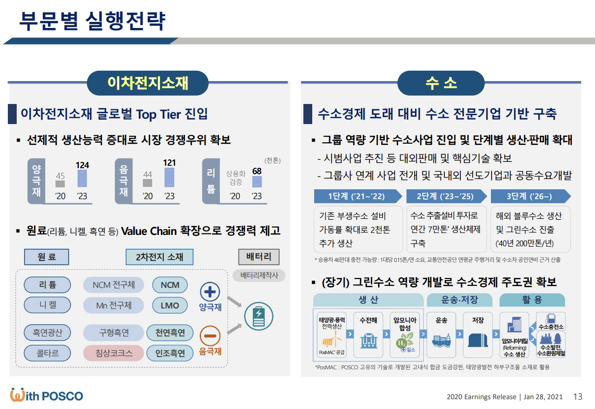 주력사업 이외에도 포스코는 리튬, 수소까지 손을 뻗으며 신성장 동력을 장착하고 있습니다.