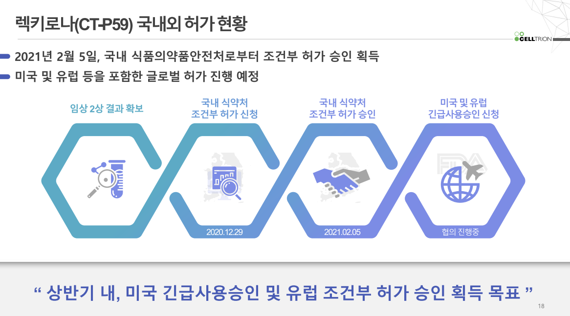 렉키로나 임상 2상 결과 발표 당시 시장의 기대보다 아쉬운 효능 보였으나 현재 상용화된 항체치료제의 경우에도 만병통치약과 같은 강력한 치료제는 존재하지 않는 상황입니다.