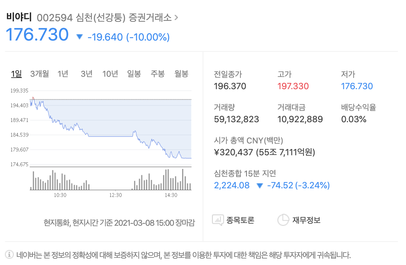 테슬라, 니오, 샤오펑 등 글로벌 전기차 업체들은 약 40%대의 더욱 큰 낙폭을 보이고 있습니다. 3월 8일 중국 전인대(전국인민대표대회)에서 친환경 자동차, 전기차와 관한 내용이 싹 사라지면서 중국 전기차 관련주들이 출렁였습니다.