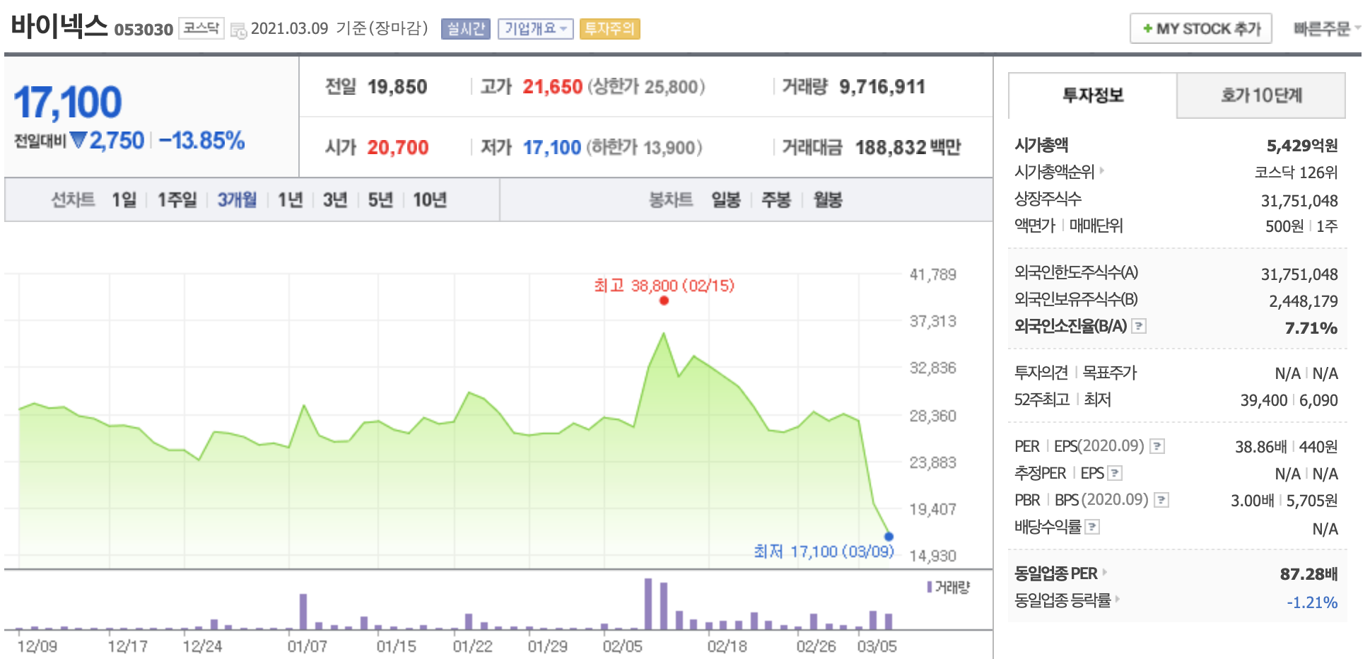 국내에 몇 되지 않는 CMO, CDMO 기업 중 하나인 바이넥스 주가가 이틀만에 약 42%가 하락하며 폭락하는 모습을 보이고 있습니다.