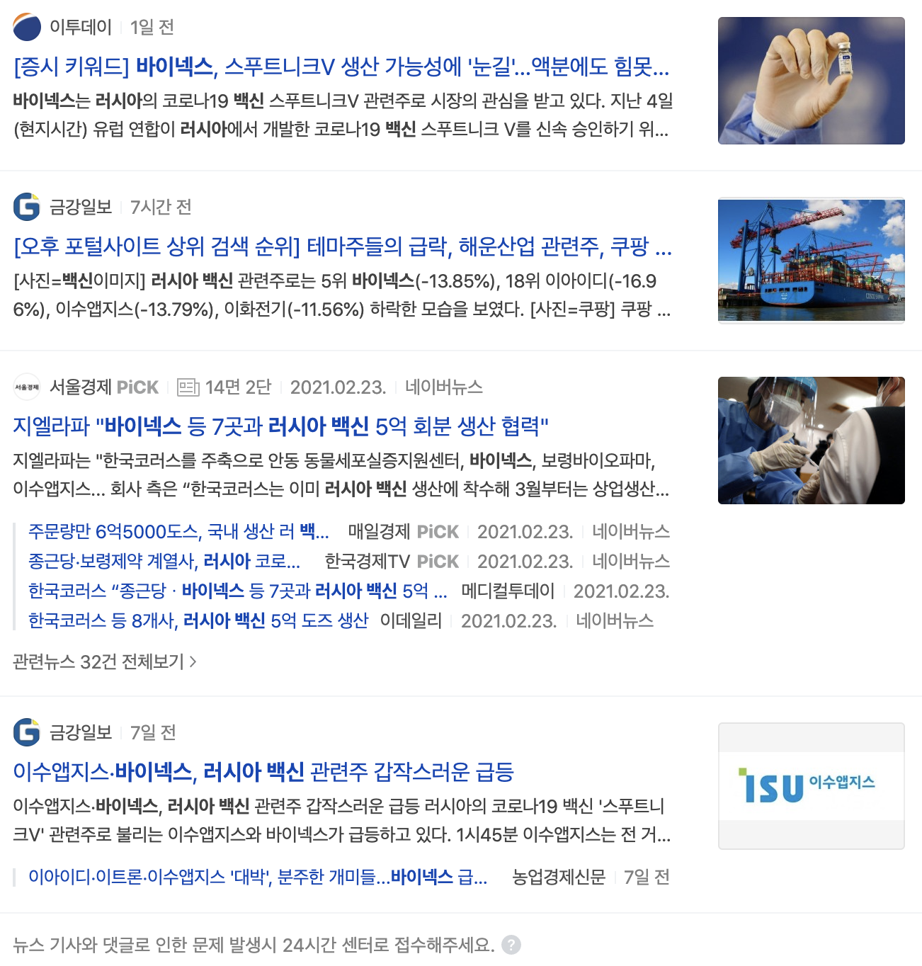 바이넥스는 러시아의 코로나 19 백신 위탁생산 업체이기에 국내에서의 불신뿐만 아니라 대한민국 제약바이오 업계에 대한 글로벌 신뢰도에도 영향을 미칠 수 있어 시장에서는 주요하게 지켜보고 있는 것으로 보입니다.