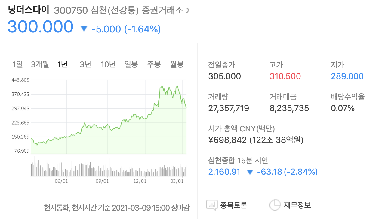 하지만 3월 9일 삼성SDI가 중국 배터리 공장 대규모 증설을 할 것이라는 단독보도가 나오며 주목을 받고 있습니다.