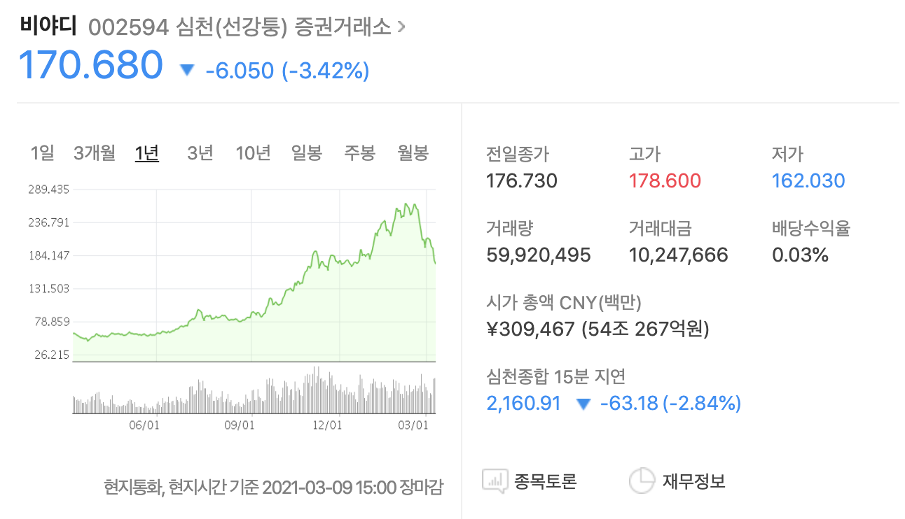 3월 10일 중국 증시에서 BYD, CATL 등 중국 전기차 관련주들의 주가 흐름도 회복이 된다면 다시 한 번 상승 추세를 만들 수 있을 것으로 보입니다.