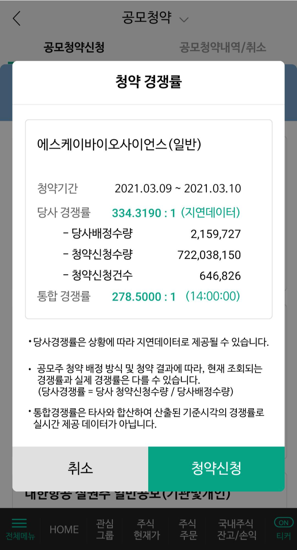 엄청난 인기와 함께 SK바이오사시언스 공모주 청약이 끝났습니다. 상상을 초월하는 수준의 인기였는데, 공모주 청야게 균등배정 방식이 도입되면서 참여건수가 폭등하는 모습을 보였습니다.
