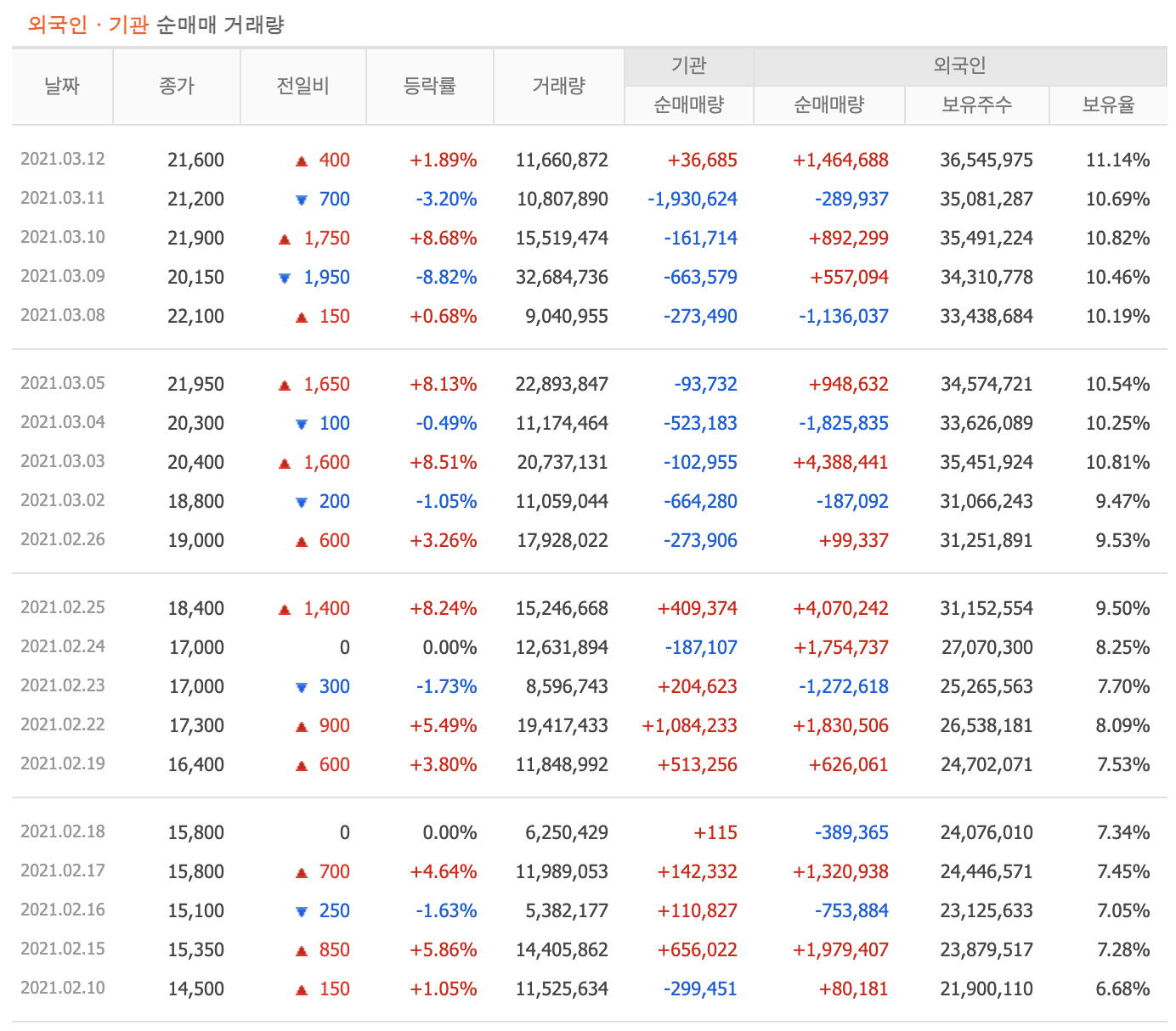 부르는게 값이라는 해상 운임과 함께 HMM주가 역시 고공행진을 이어가고 있습니다. 코로나 저점 대비 무려 10배가 오른 상황에서 외인과 기관이 쌍끌이 매수를 이어가며 기대감을 높여가고 있습니다.