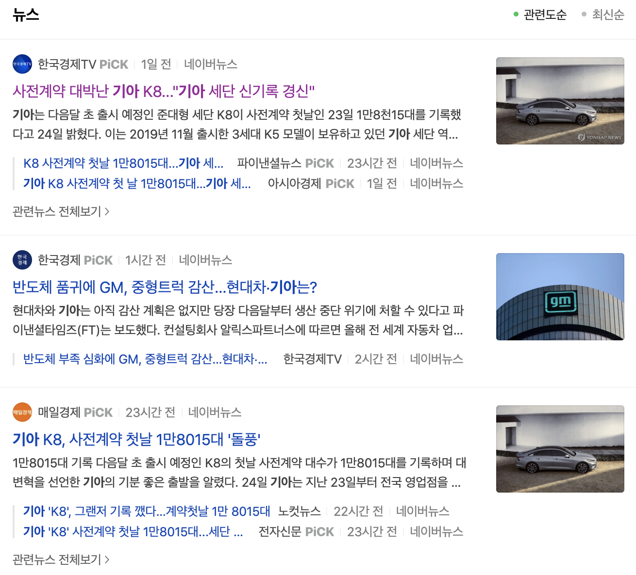 K8의 경우 사전계약 첫날인 23일 18,015대가 계약되며 2019년 11월 출시한 3세대 K5 모델의 사전계약기록(7,003대)을 가뿐히 넘겼습니다.