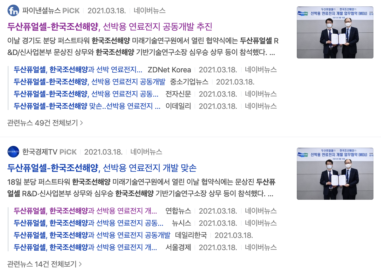 한국조선해양은 지난 3월 18일 수소 기업인 두산퓨얼셀과 함께 친환경 선박용 연료전지를 공동개발한다고 알렸습니다. 양사는 MW급 고체산화물 연료전지(SOFC) 시스테을 개발하고, 2024년 한국형 SOFC 시스템 양산을 목표로 두고 있습니다.