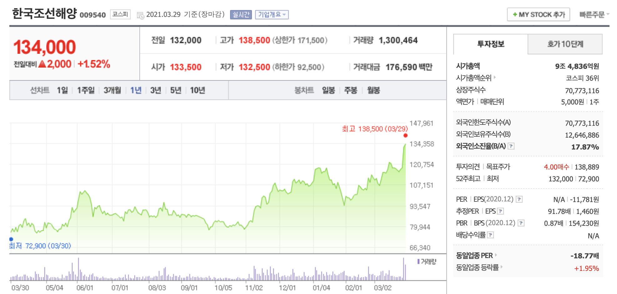 증권가에서는 한국조선해양 목표주가를 13만원~15.8만원으로 매수 의견을 제시하고 있습니다.