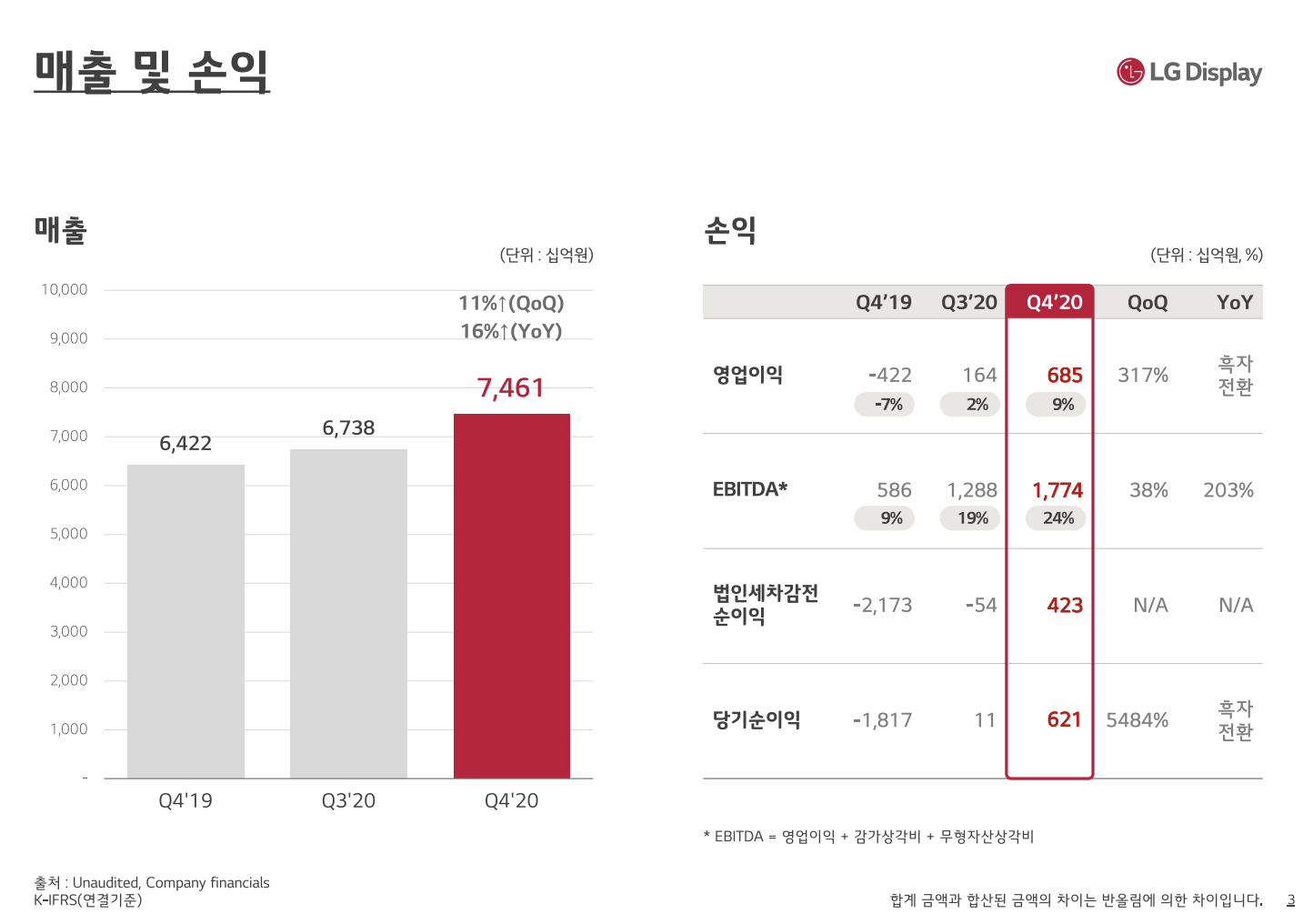 전통적으로 1분기가 비수기임에도 불구하고 패널 가격이 상승하면서 실적이 큰 폭으로 개선되었을 것으로 예상되고 있으며 패널가격 상스세는 2분기까지 지속되고, 구조조정 이후 디스플레이 업황이 빠르게 회복하면서 2021년 전체 실적도 좋아질 것으로 예측되고 있습니다.
